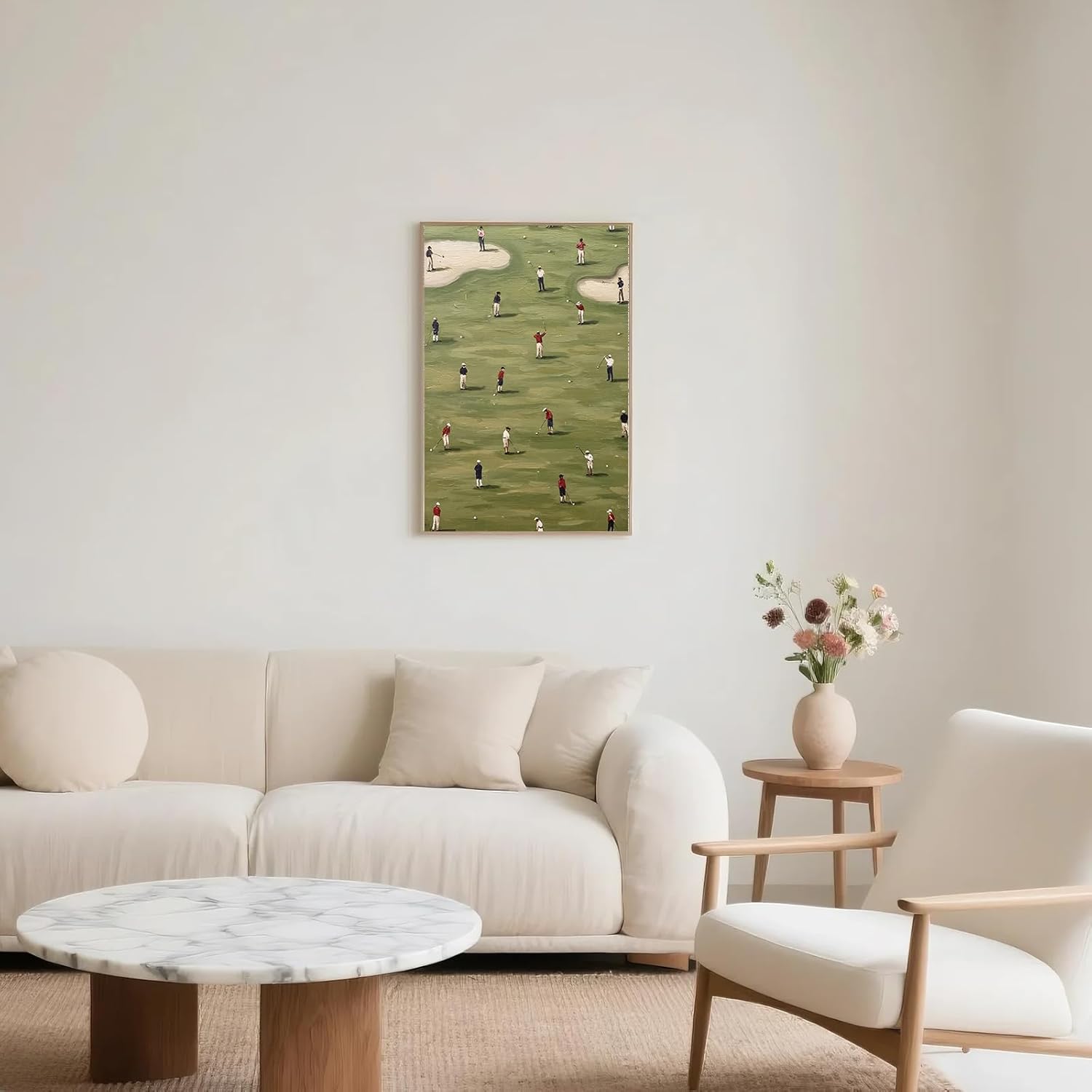 - Step into a world of vintage golf charm with this framed wall art! It captures tiny golfers on a sprawling green course, blending retro aesthetics with sports - inspired detail. The soft, nostalgic tones and miniature player design bring the timeless allure of golf to life—perfect for infusing living rooms, bedrooms, or man caves with a touch of sporty elegance