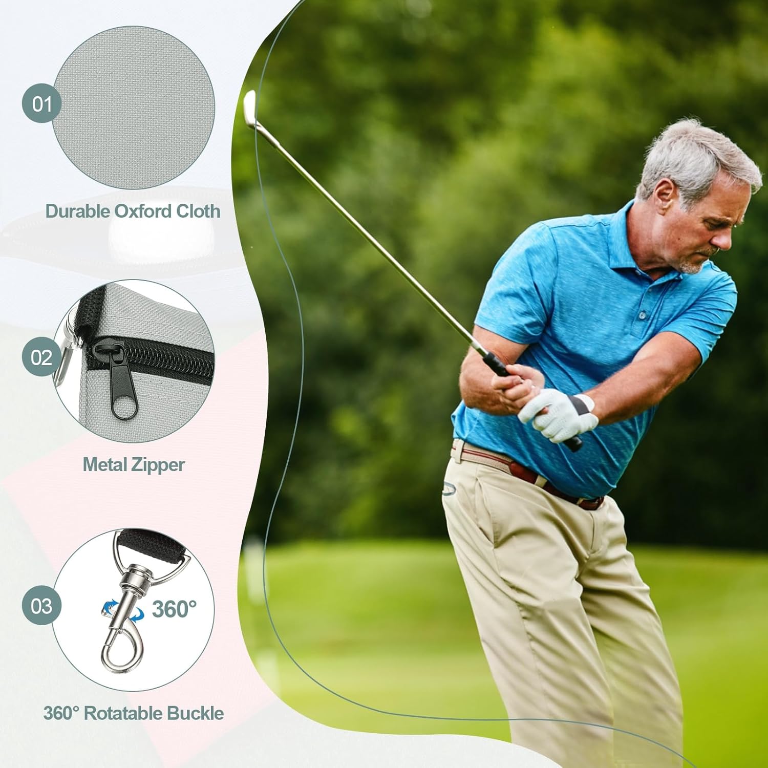 • Convenient to Carry: This golf bag is compact and comes with a 360-degree rotatable lobster claw clip, making it perfect for carrying. You can easily clip to your golf bag, belt, or backpack for easy access.
