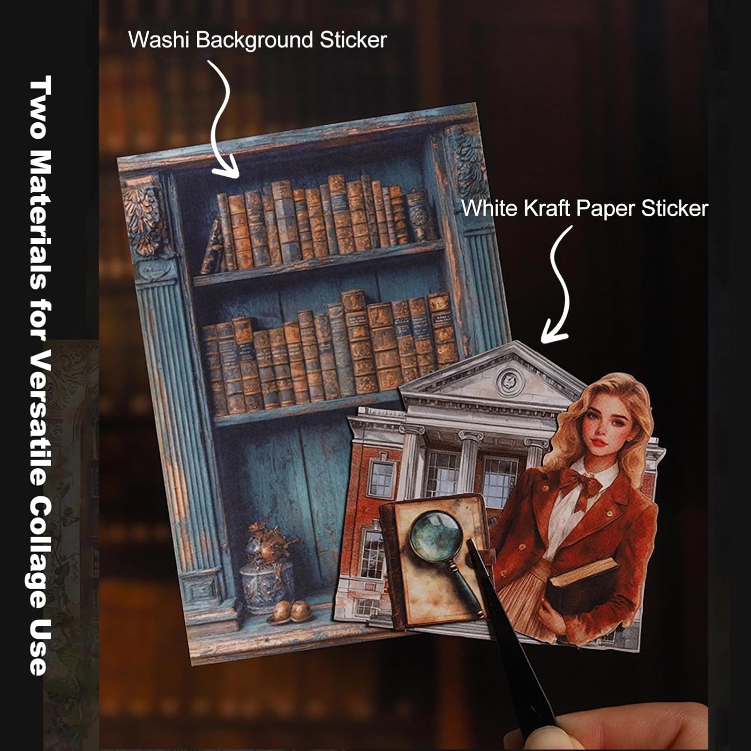 Gothic Scrapbook Stickers Set – 150PCS Vintage Academy Theme Stickers on Washi & Kraft Adhesive Paper, Pre-Cut Borderless Design, for Journals, Collage, DIY Decor