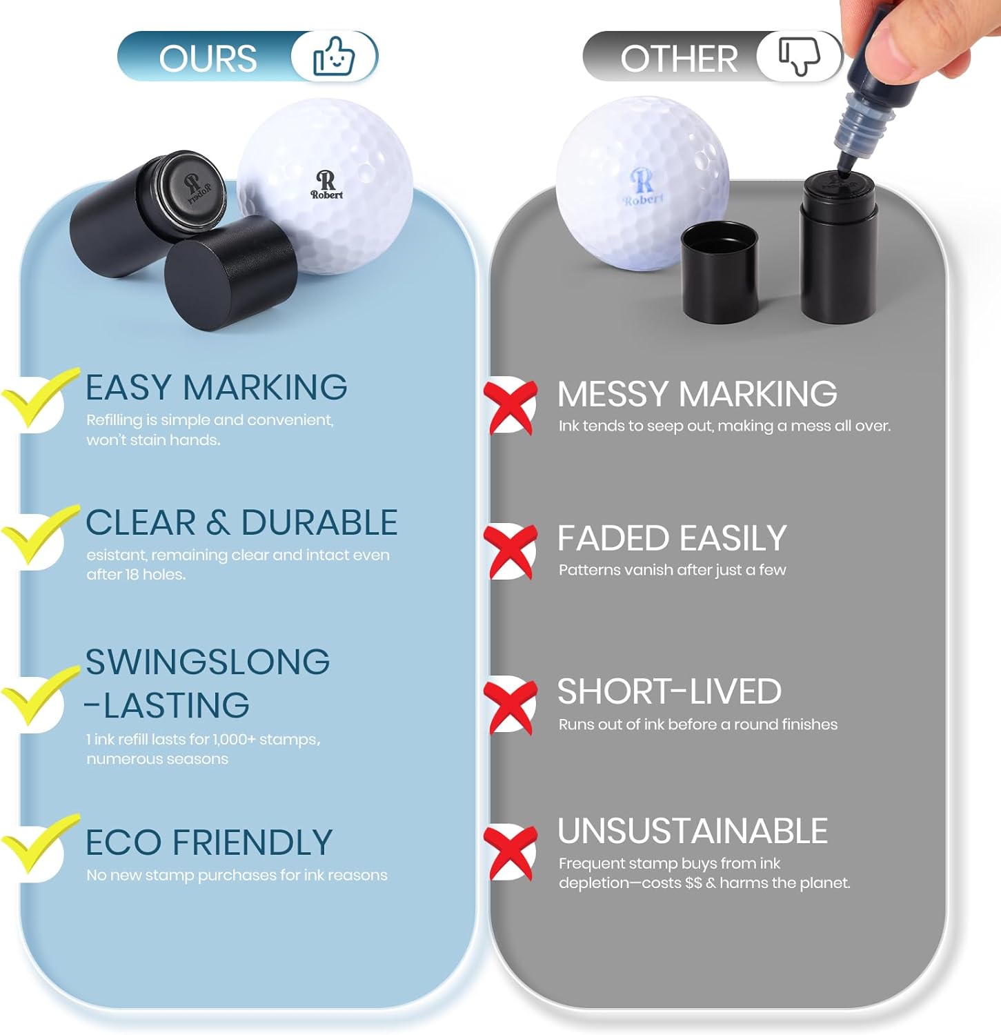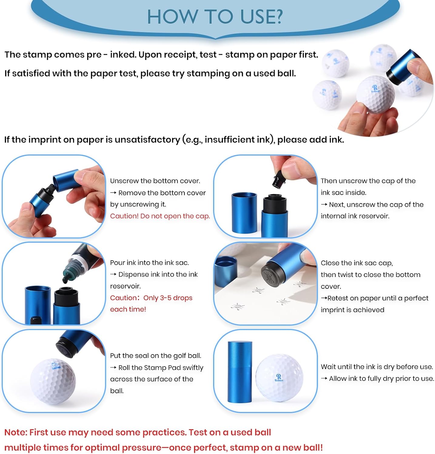- Premium Golf Ball Marker with Ink Included: This golf ball marker comes with quality, long-lasting ink for clear and consistent marking. Each stamp ensures your golf balls stand out, and the included ink provides reliable, smudge-proof impressions.