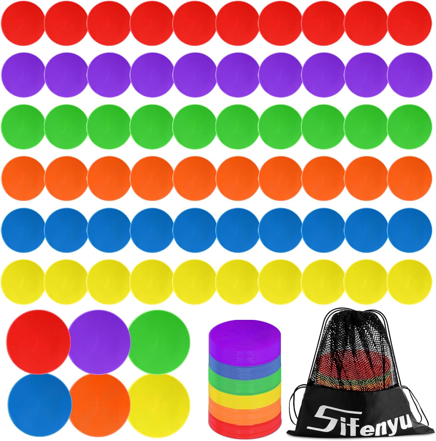 - 【BRIGHT, VIBRANT COLORS】There are six different colors, red, yellow, orange, green, blue, purple. All spot markers for kids are brightly colored for high visibility. They're easy to see during games and drills when training or practicing sports. Besides, our rubber floor dots for gym are washable and odorless, so it is very easy to keep them clean