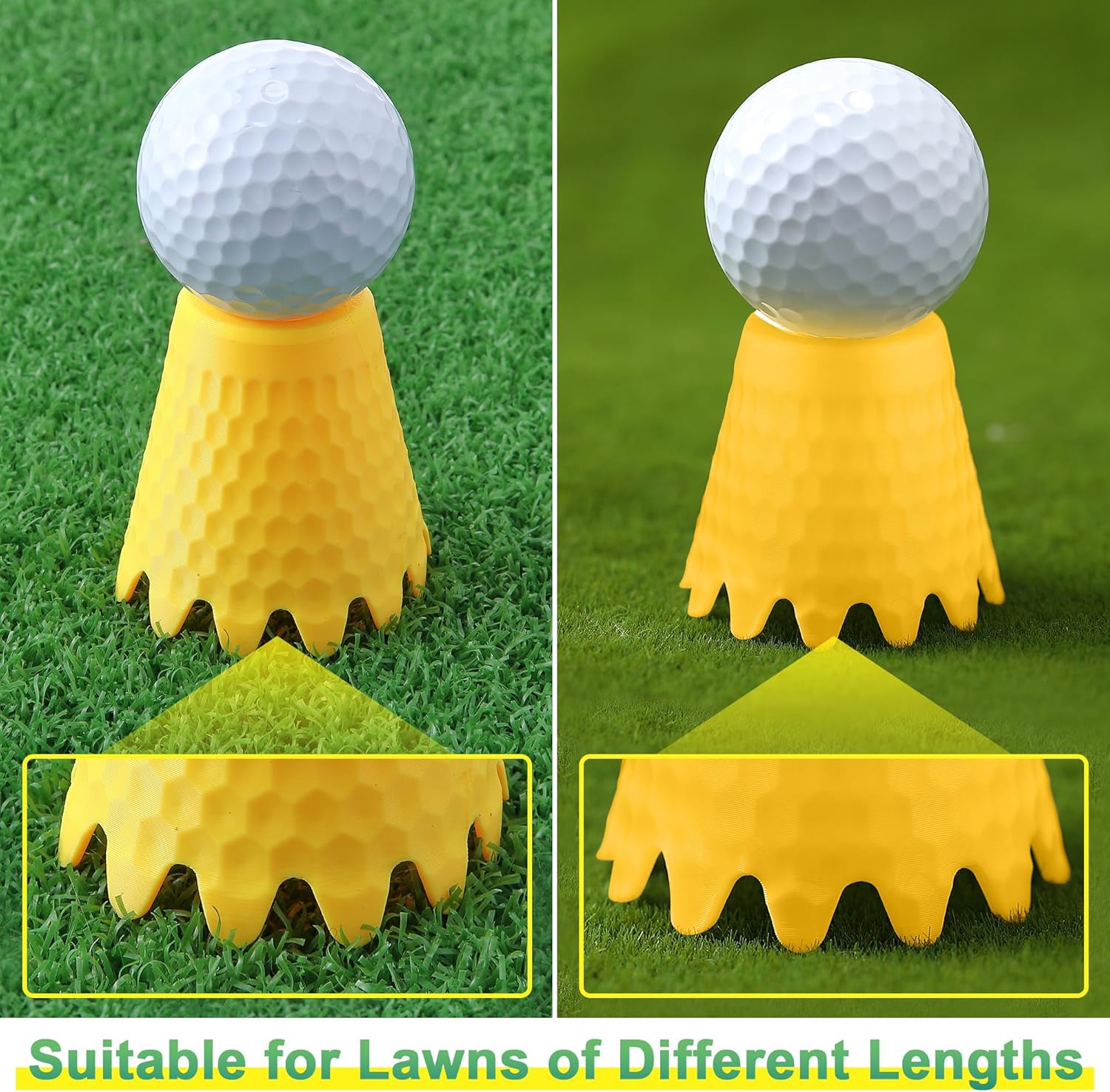 - Stable Structure: The bottom adopts a wave shaped design, which enables golf tees to stand stably on different lengths of grassland. Besides, TPU material has certain weight and will not easy to fly up like plastic material, without worrying about affecting practice