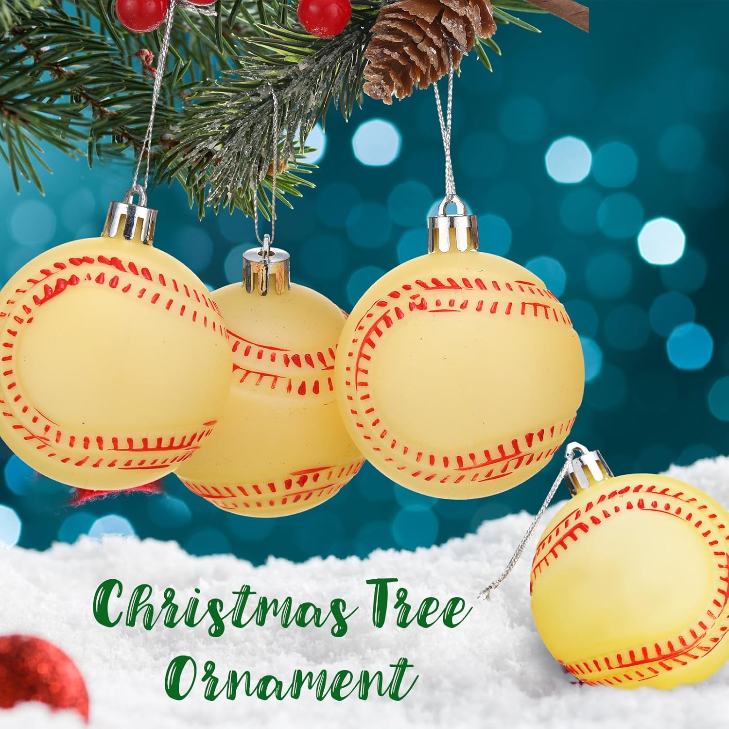 Leitee 18 Pcs Christmas Plastic Softball 2.36 Inch Xmas Tree Ornaments with Hanging Loop Sports Theme Decorative Hanging Ornaments for Holiday Party Christmas Tree Home