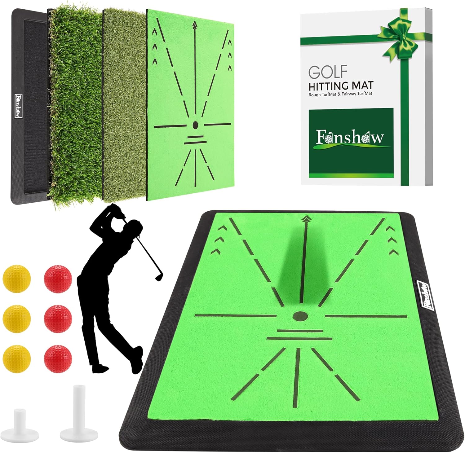 - 【3-in-1 Versatile Golf Trainer - Perfect for All Swings & Handedness】 Master every shot from drive to putt with three interchangeable turf mats (Fairway, Rough, Divot Board) and practice balls. This mat is expertly designed for both left and right-handed golfers, making it ideal for practicing different golf swings like chips, pitches, and full irons. The ultimate golf training tool for realistic course simulation at home.