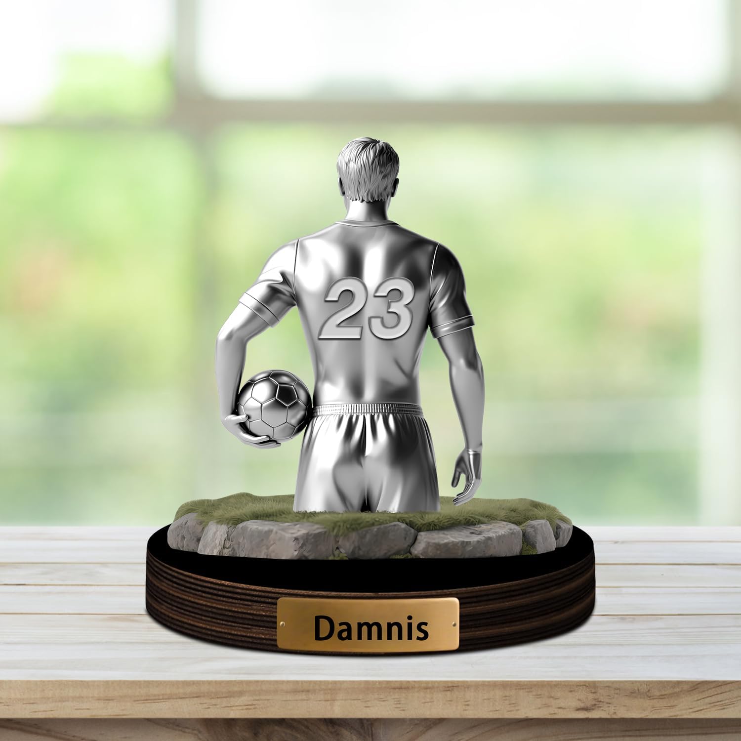 Personalized Soccer Player Desktop Ornament for Bedroom Office Football Sport Desk Name Plate Custom Name Athletes Figurine Sign Sport Lovers Acrylic Plaque Gift for Men Women Soccer Lover