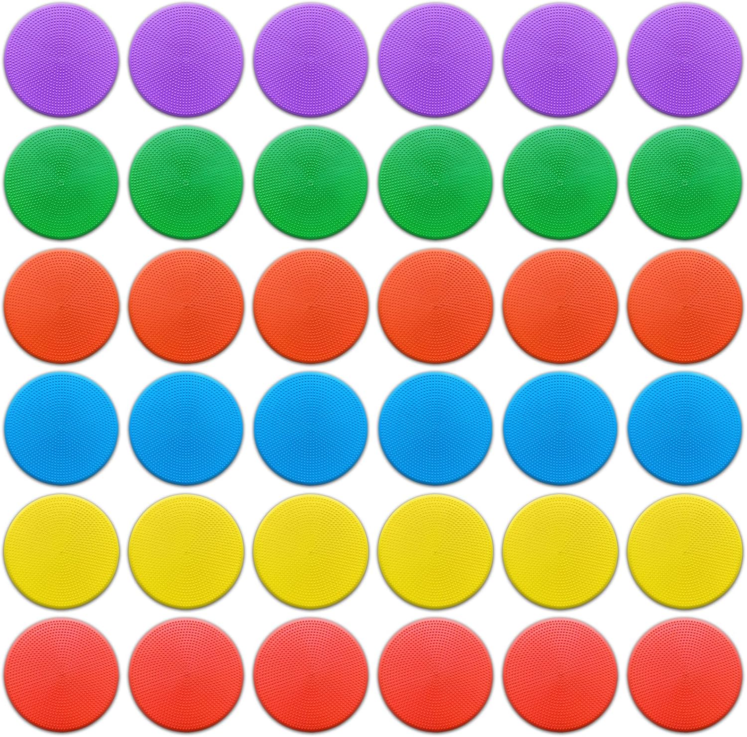 - 【BRIGHT, VIBRANT COLORS】The set includes 36 floor dots for classroom in 6 colors, packed in a drawstring bag. All floor spots are brightly colored for high visibility. The bright colors improve visual acuity making them the perfect equipment for mapping out training drills or a playing area