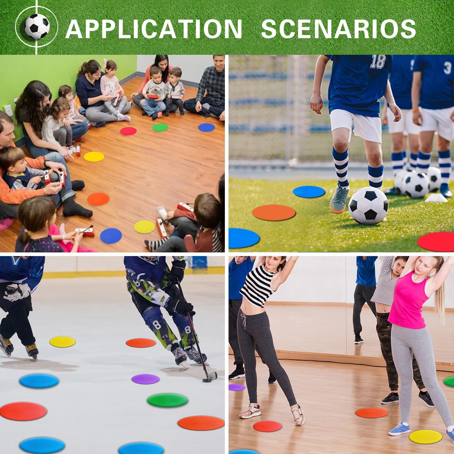- 【WIDE RANGE OF USES】These rubber dots for non slip are very suitable for use in preschool and kindergarten classrooms, gym and homes, such as agility training, exercise drills, gym workouts, obstacle courses, games, classroom floor markers, sitting spots and more - Make your activities pop, active, and organized!