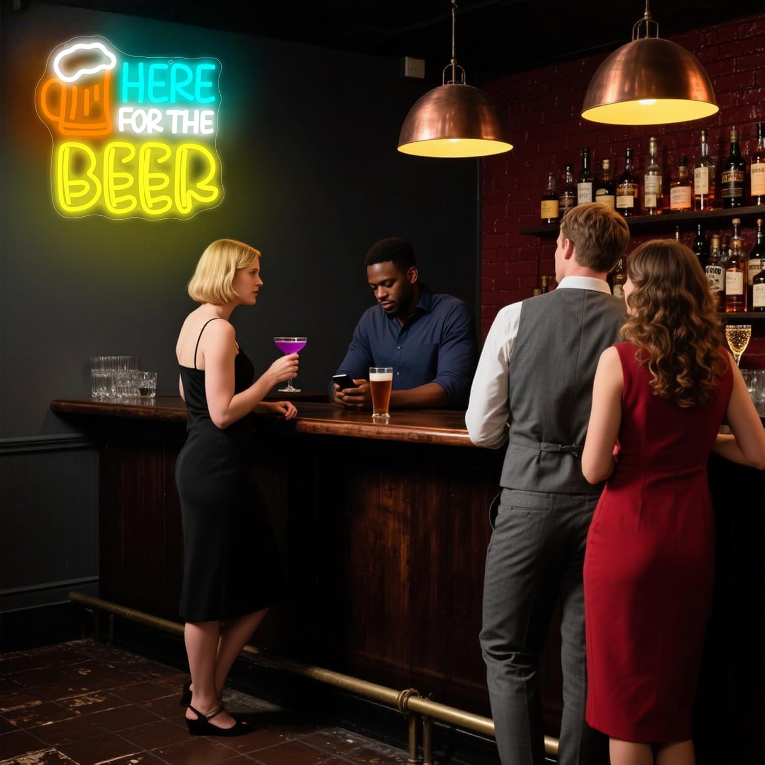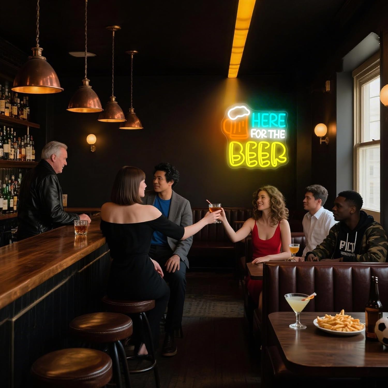 - Unique Design: The beer neon sign flaunts the bold phrase here for the beer paired with a classic beer mug graphic. Beer enthusiasts will instantly connect with this fun-loving design. Ideal as standout decor for bars, man caves, or patios, it adds a lively, laid-back vibe that screams cheers and draws attention