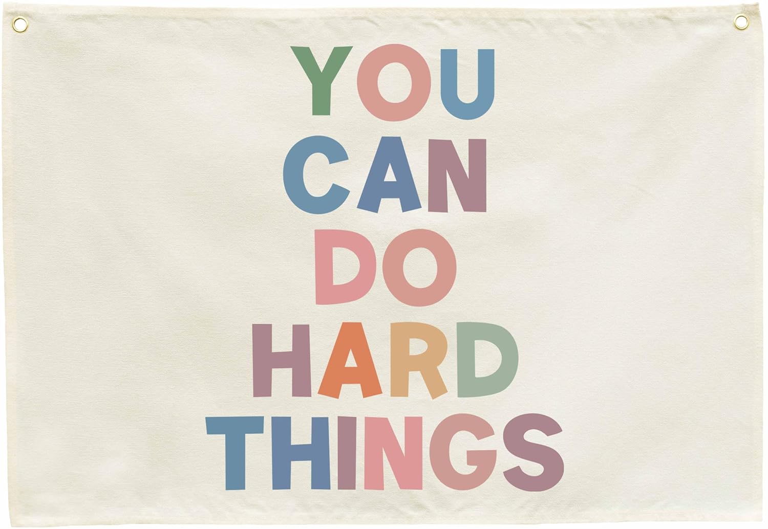 Classroom Wall Decor-Inspirational Classroom Quotes-Nursery Decoration Rectangle Banner Flag Wall Decor-You Can Do Hard Things-Positive Motivational Growth Mindset Quotes for Homeschool-28.5"L×20"W
