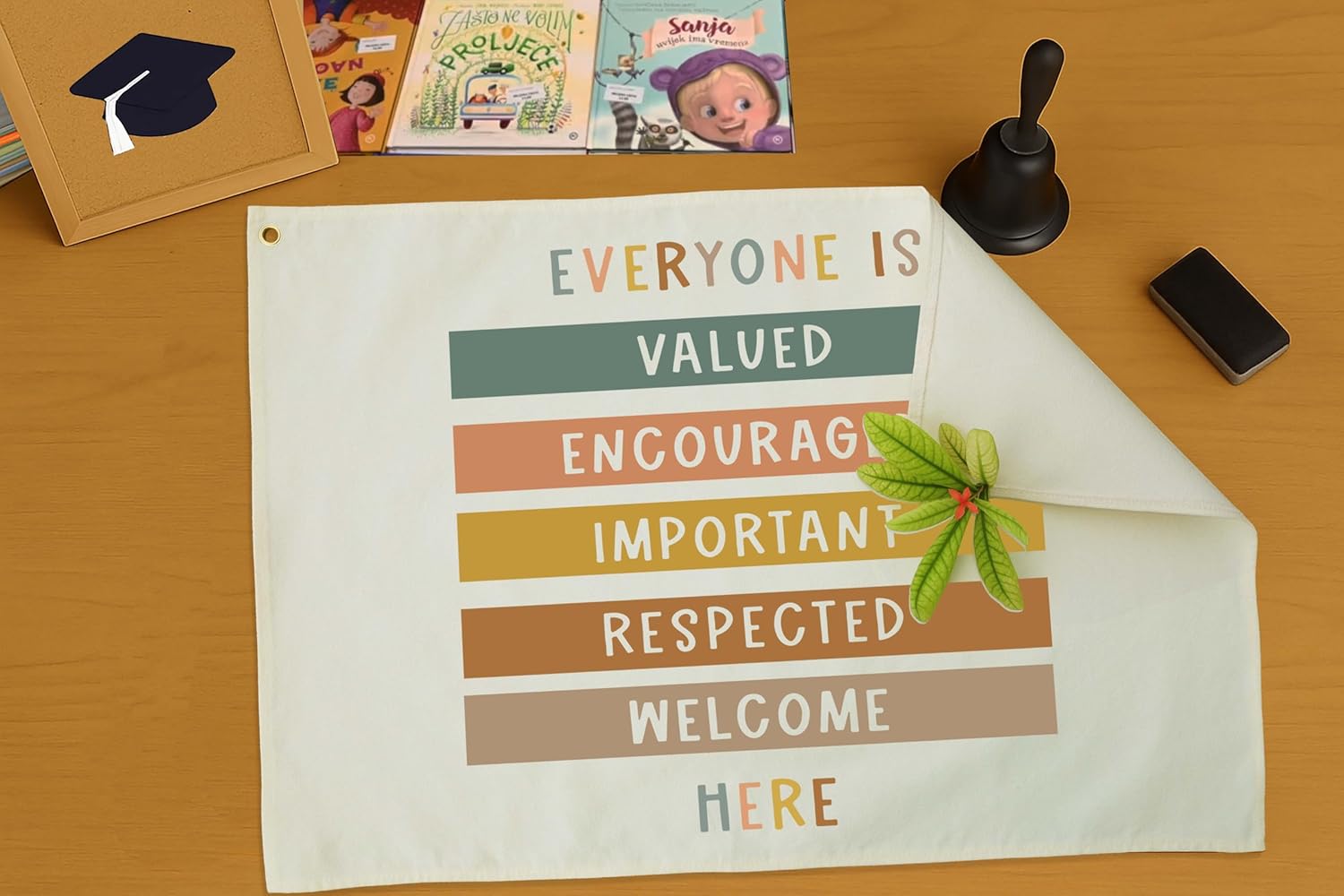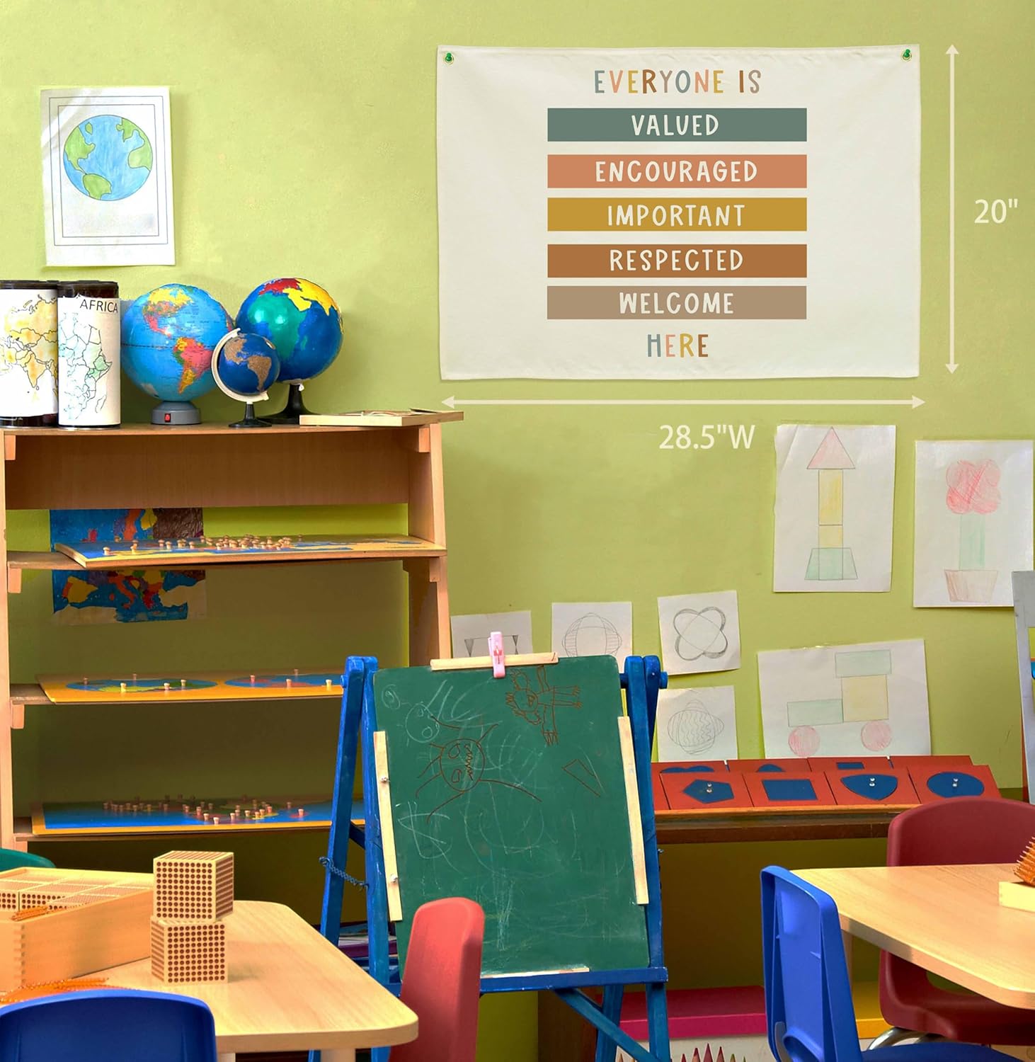 Classroom Poste-Classroom Decor-Teacher Present-Nursery Decoration-Hanging Rectangle Banner Flag Wall Decor Gift-Christmas Gift-Psychology Treatment Office Wall Sign-Everyone is Valved-20L×28.5"W