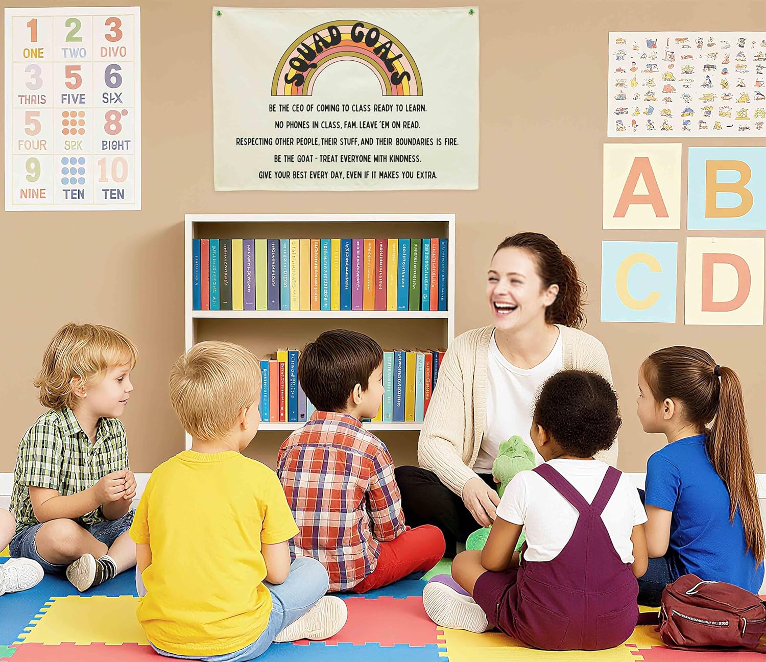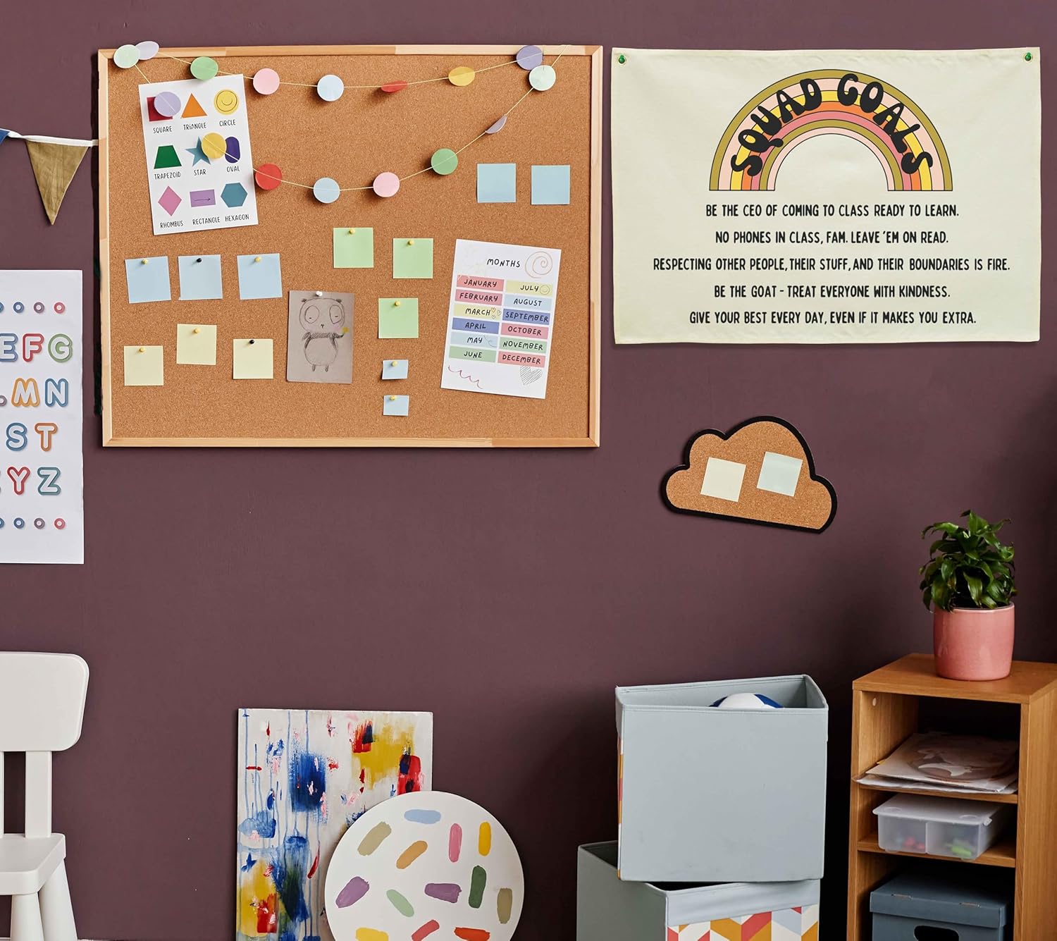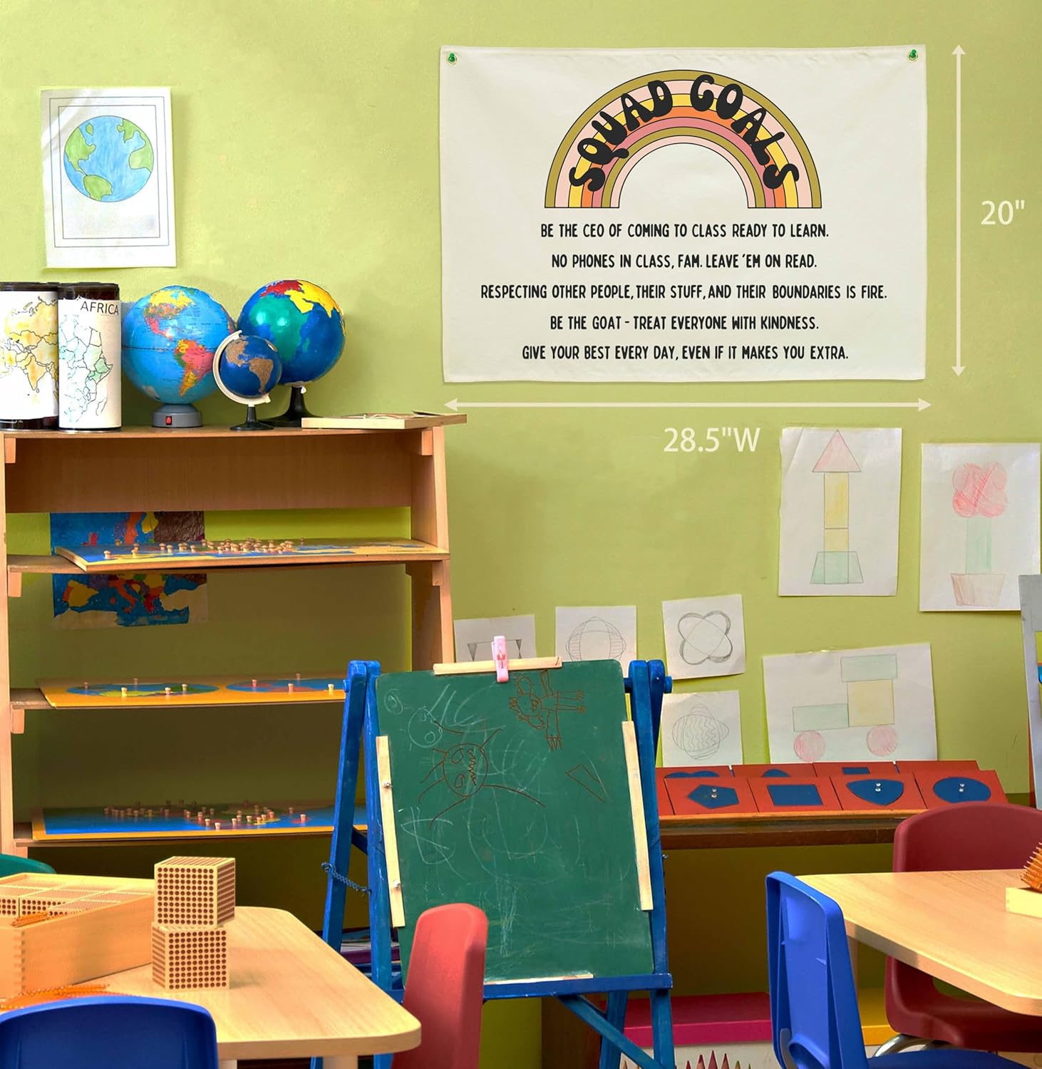 Classroom Wall Decor Poster-Funny Class Rules Banner-Teen Slang Flag-Rectangle Banner Flag Wall Decor-Door Sign-Christmas Gift-Inspirational Positive Motivational Growth Quote-Squad Goals-28.5"L×20"W
