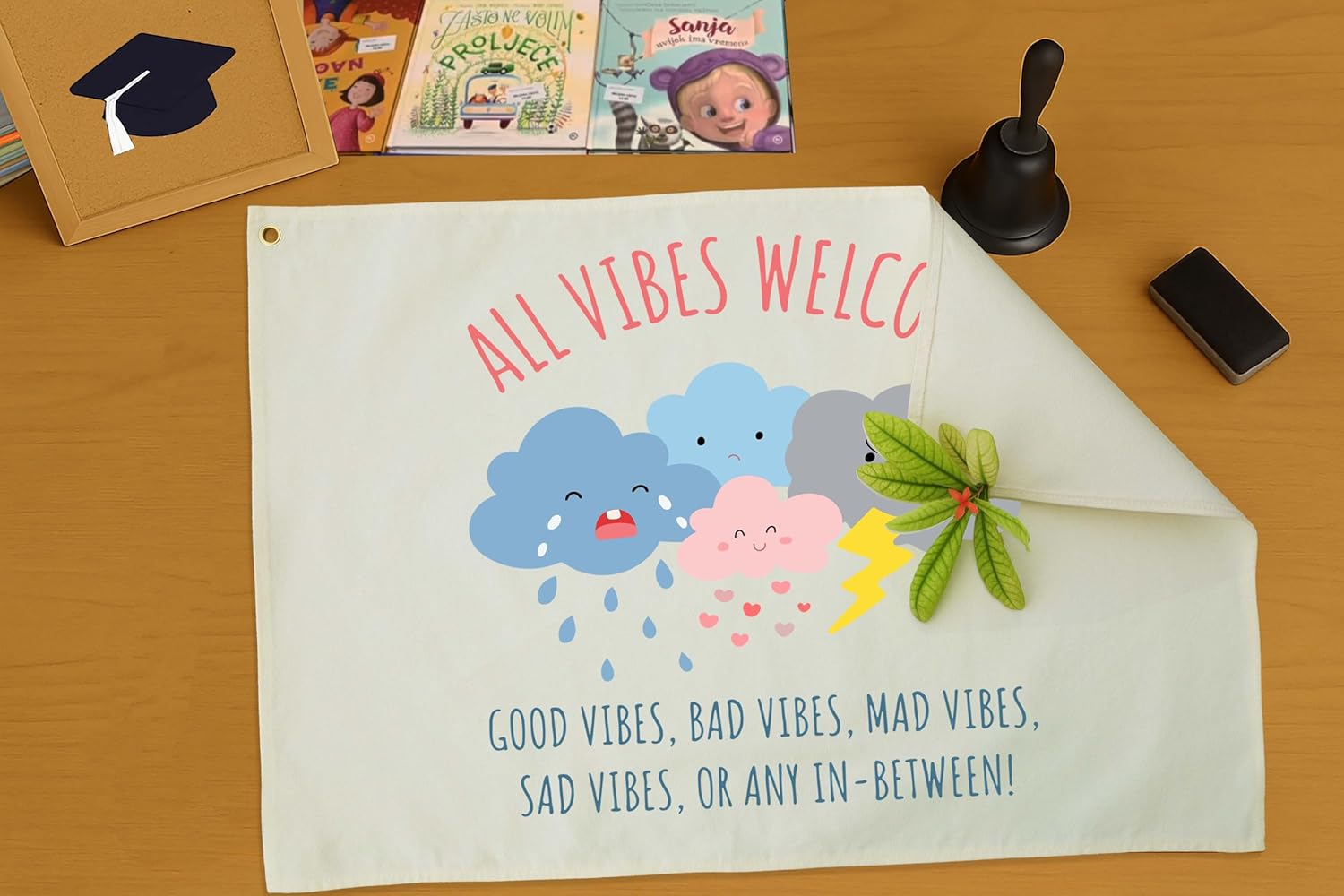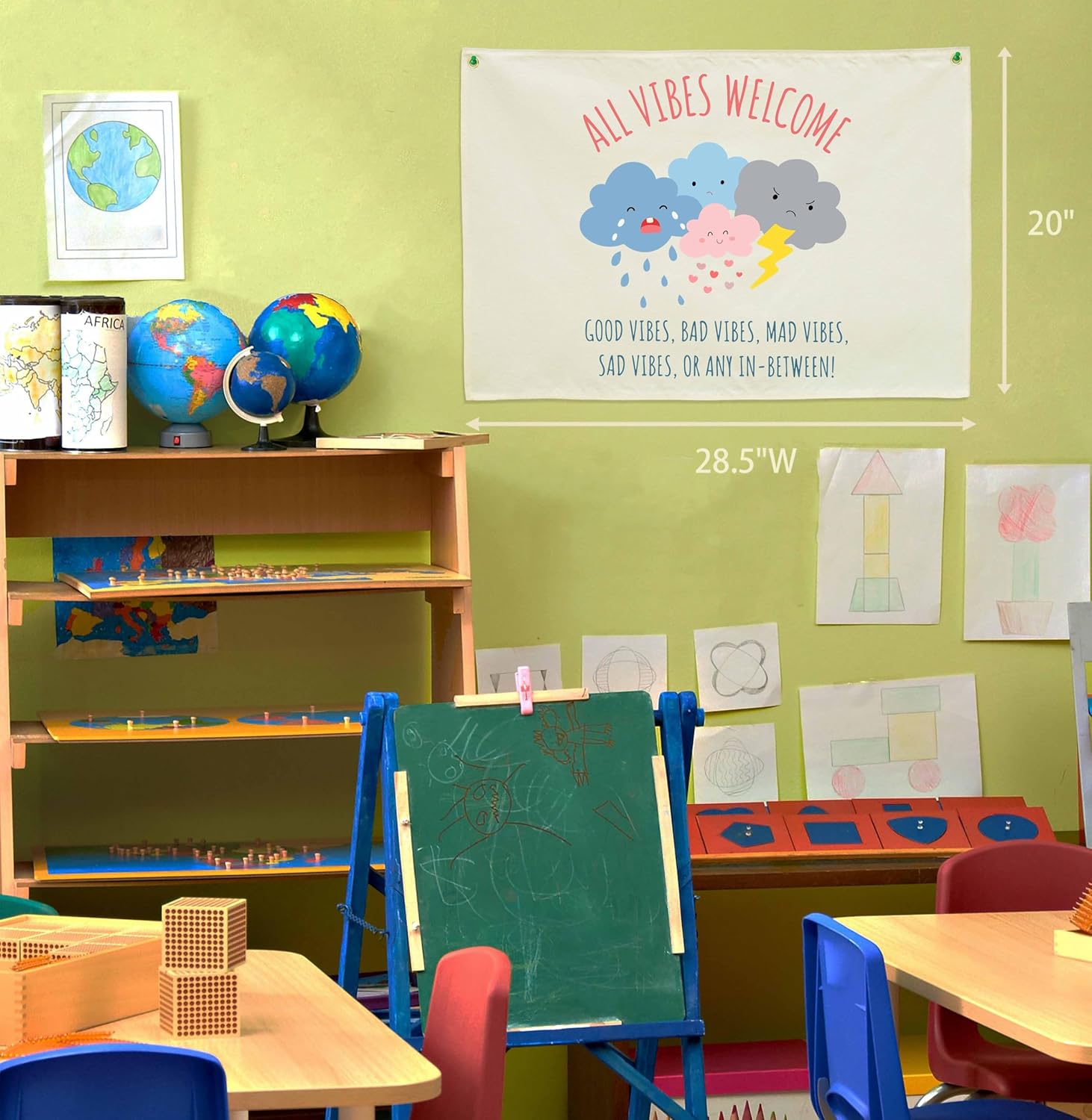 Classroom Wall Poster-Guidance Therapy Classroom Decoration-Mental Health-Welcome Present-Feel Feelings Banner-Rectangle Banner Flag Wall Decor-Door Sign-All Vibes Welcome-Christmas Gift-28.5"L×20"W