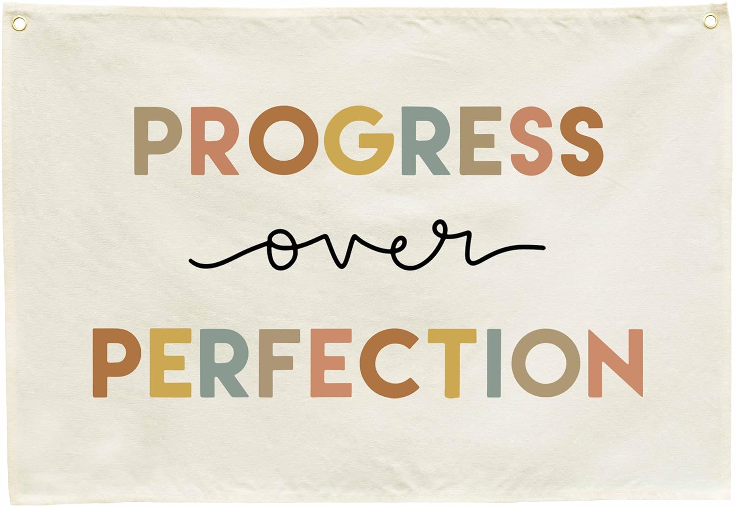 Classroom Wall Decor-Reading Room Nursery Decor-Rectangle Banner Flag Wall Decor-Positive Affirmation Growth Mindset-Mental Health-Christmas Gift-Progress Over Perfection-28.5"L×20"W