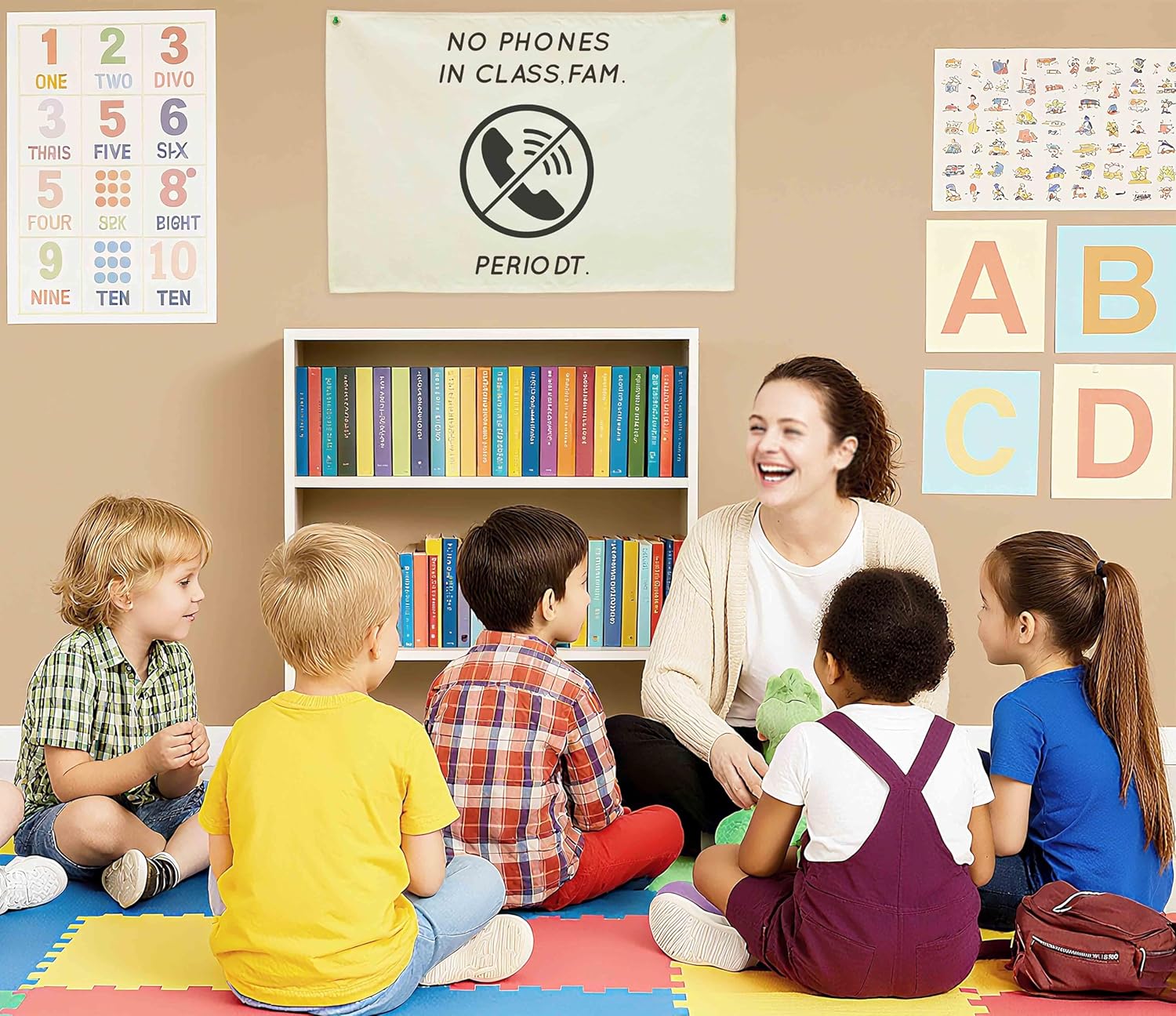 Classroom Wall Decor Poster-Funny Classroom Rules Banner-Teenager Slang-Middle High School Class Decortion-Rectangle Banner Flag Wall Decor-Christmas Gift-No Phones in Class-28.5"L×20"W