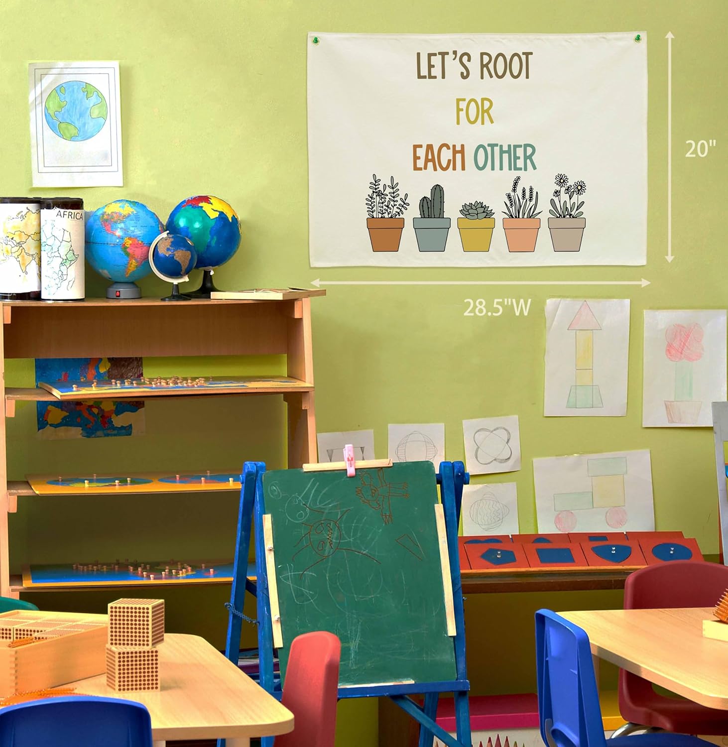 Classroom Decor-Classroom Poster-Child Art-Nursery Sign-Hanging Rectangle Banner Flag Wall Decor-Mental Health-Positive Affirmation Growth Quote-Christmas Gift-Let's Root for Each Other-28.5"L×20"W