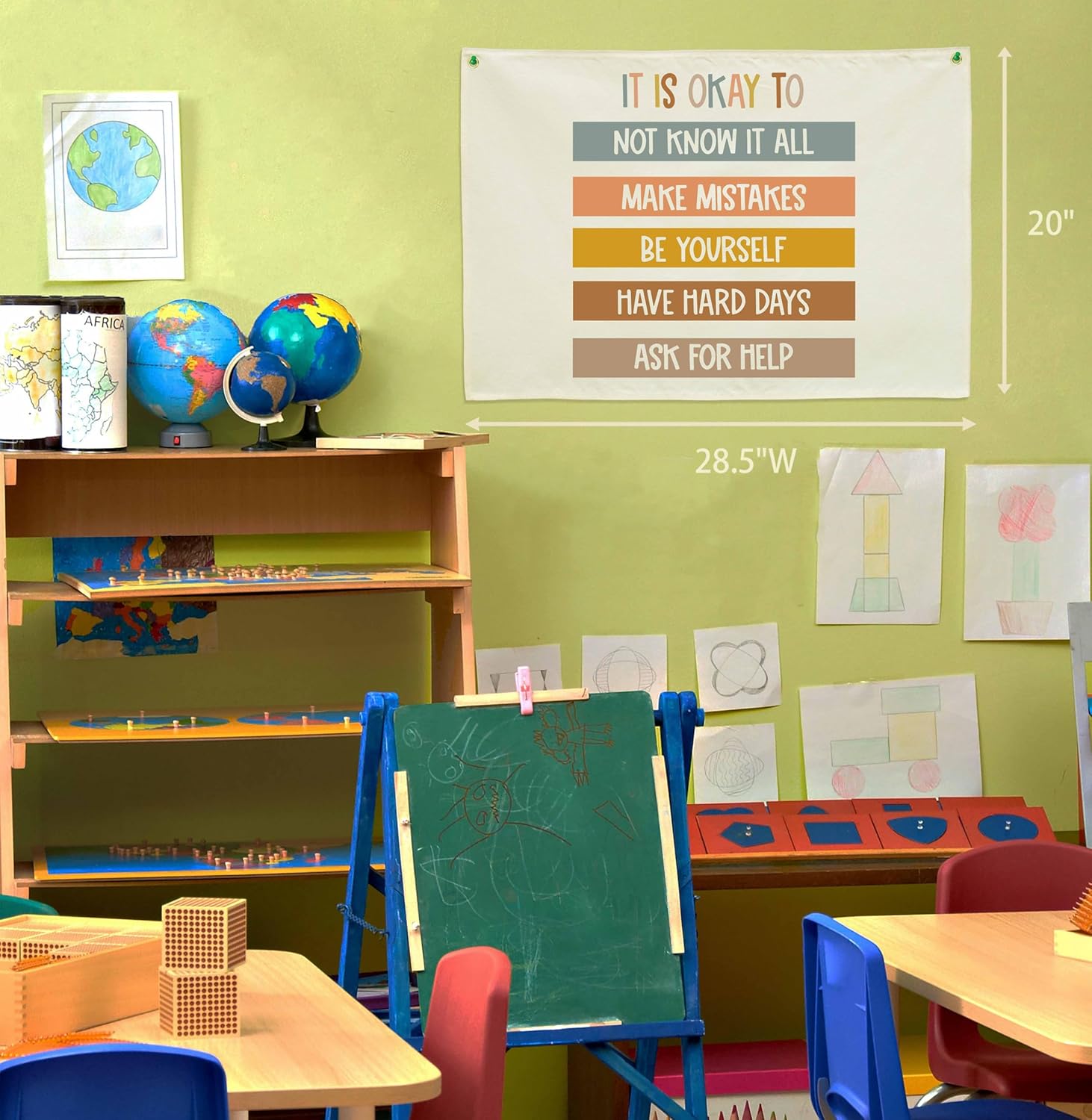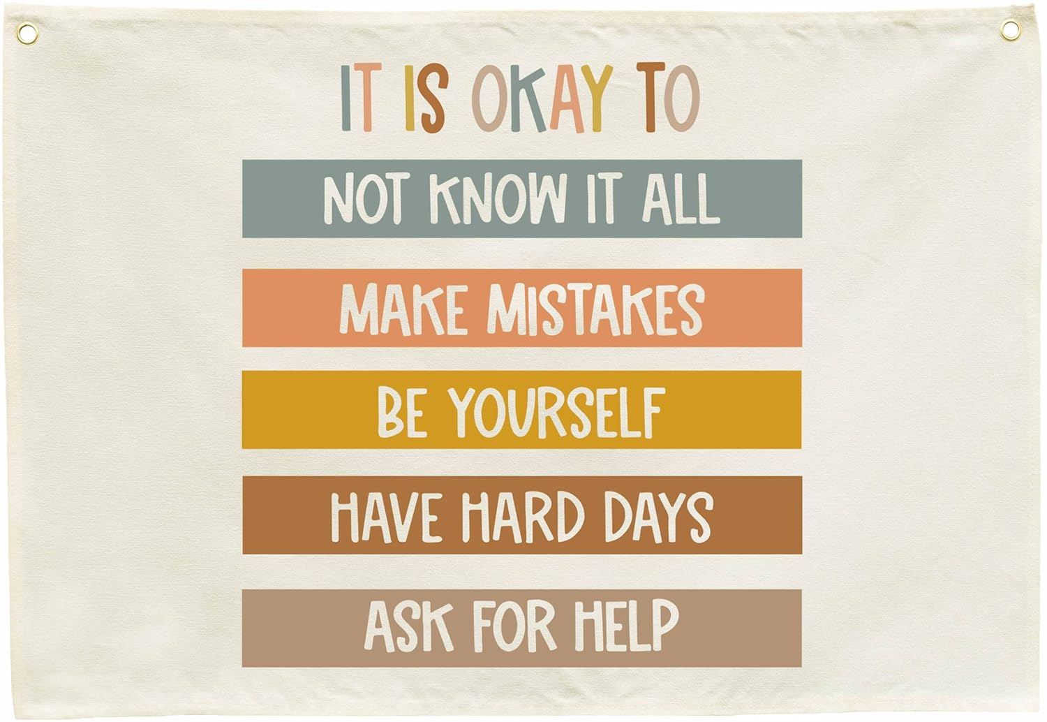 Classroom Decor-Classroom Wall Poster-Child Art-Teacher Present-Nursery Decor-Rectangle Banner Flag Wall Decor-Positive Affirmation Motivational Growth Quote-Christmas Gift-It Is Okay-28.5"L×20"W