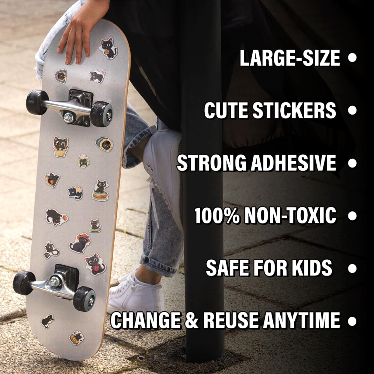 - Cute Black Cat Variety: This pack includes 108 unique vinyl stickers featuring charming black cats in cozy cartoon scenes like cuddling, reading, or playing. anyone who loves adorable cat-themed designs