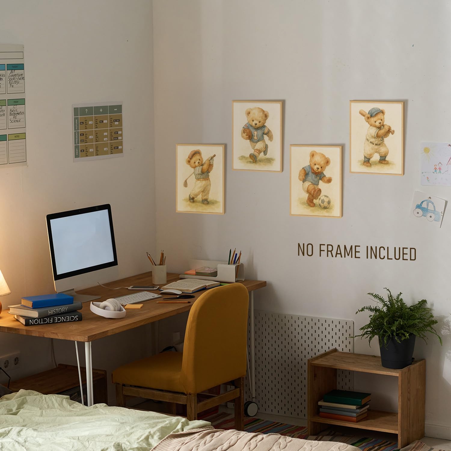 BRRNYOI Bear Nursery Wall Art Posters Set of 4, Sports Room Decor for Boys, Vintage Golf Baseball Football Soccer Bear Canvas Prints Wall Decor for Kids Boy Bedroom Playroom, 8x10 Unframed