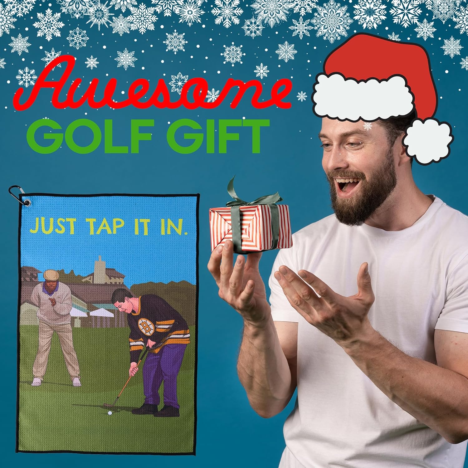 ZEETY Funny Golf Towel – 16" x 24" Premium Microfiber with Clip Holder for Golf Bags – Golf Accessories & Gifts for Men and Women (JUST TAP IT in)