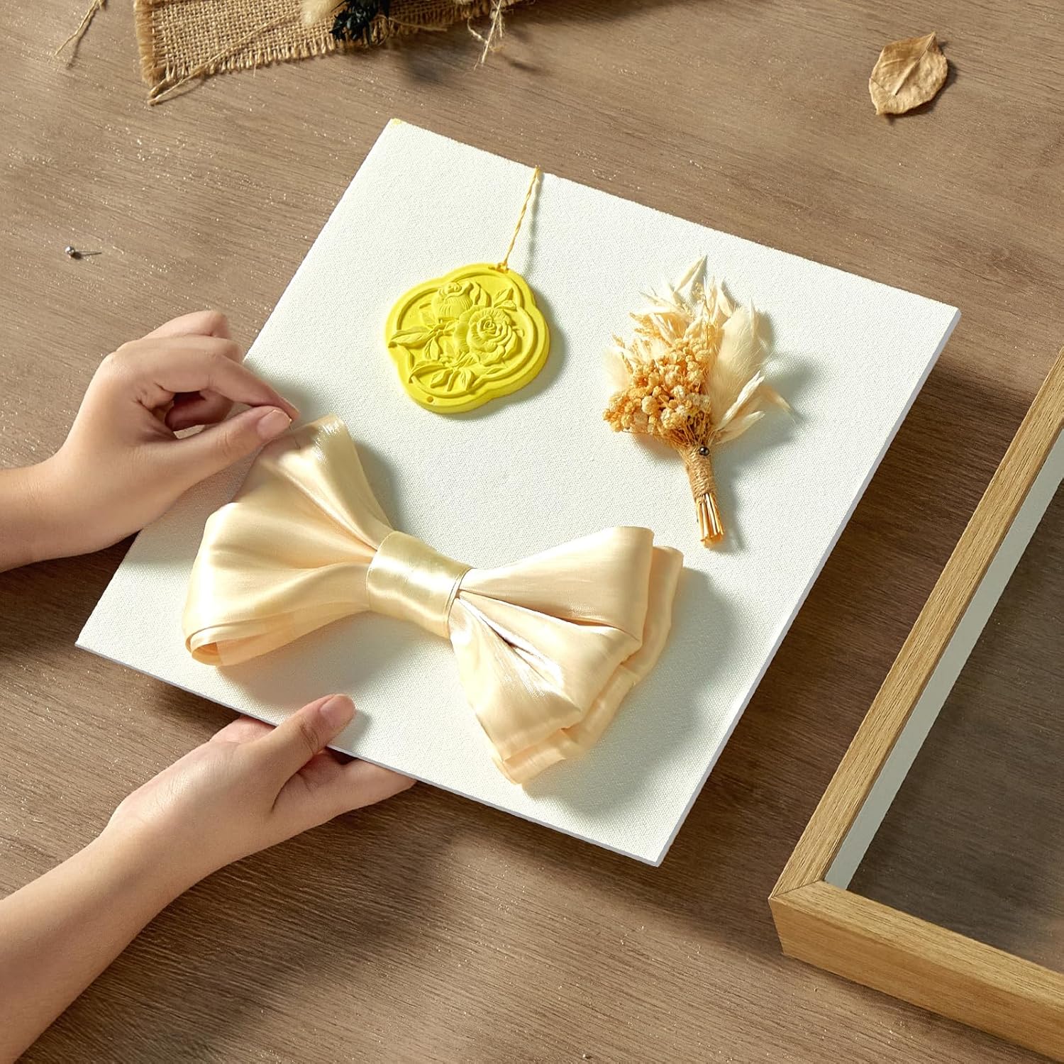 - 【RTZQQIN Shadow Box】This elegant 11x11in shadow box frame features a 0.25in thick white linen backing and 6 push pins,instantly elevating your dried flowers、medals、pets、graduation mementos,and other cherished items into art displays,Effortlessly create your own memory space.