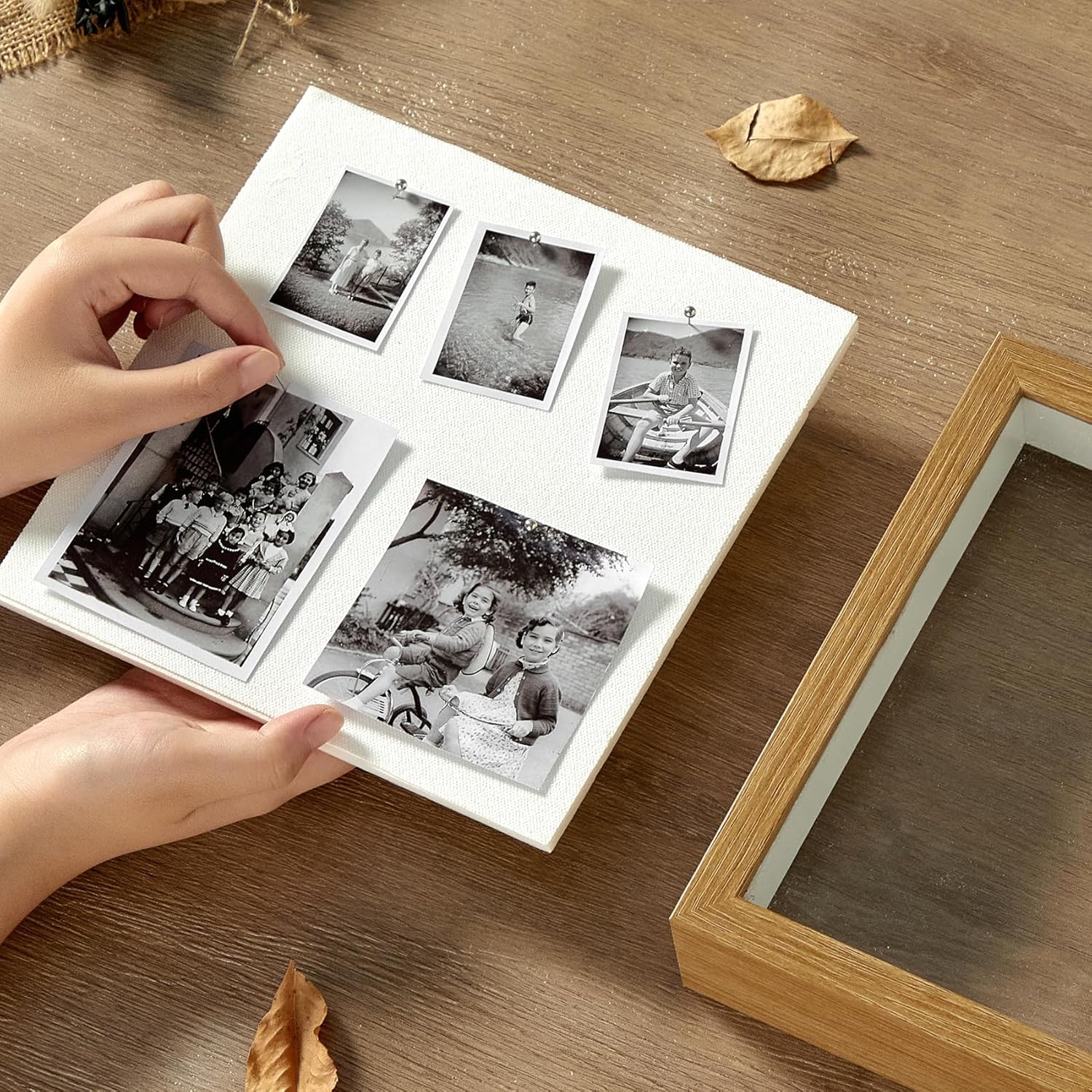 - 【RTZQQIN Shadow Box】This elegant 8x8in shadow box frame features a 0.25in thick white linen backing and 6 push pins,instantly elevating your dried flowers、medals、pets、graduation mementos,and other cherished items into art displays,Effortlessly create your own memory space.