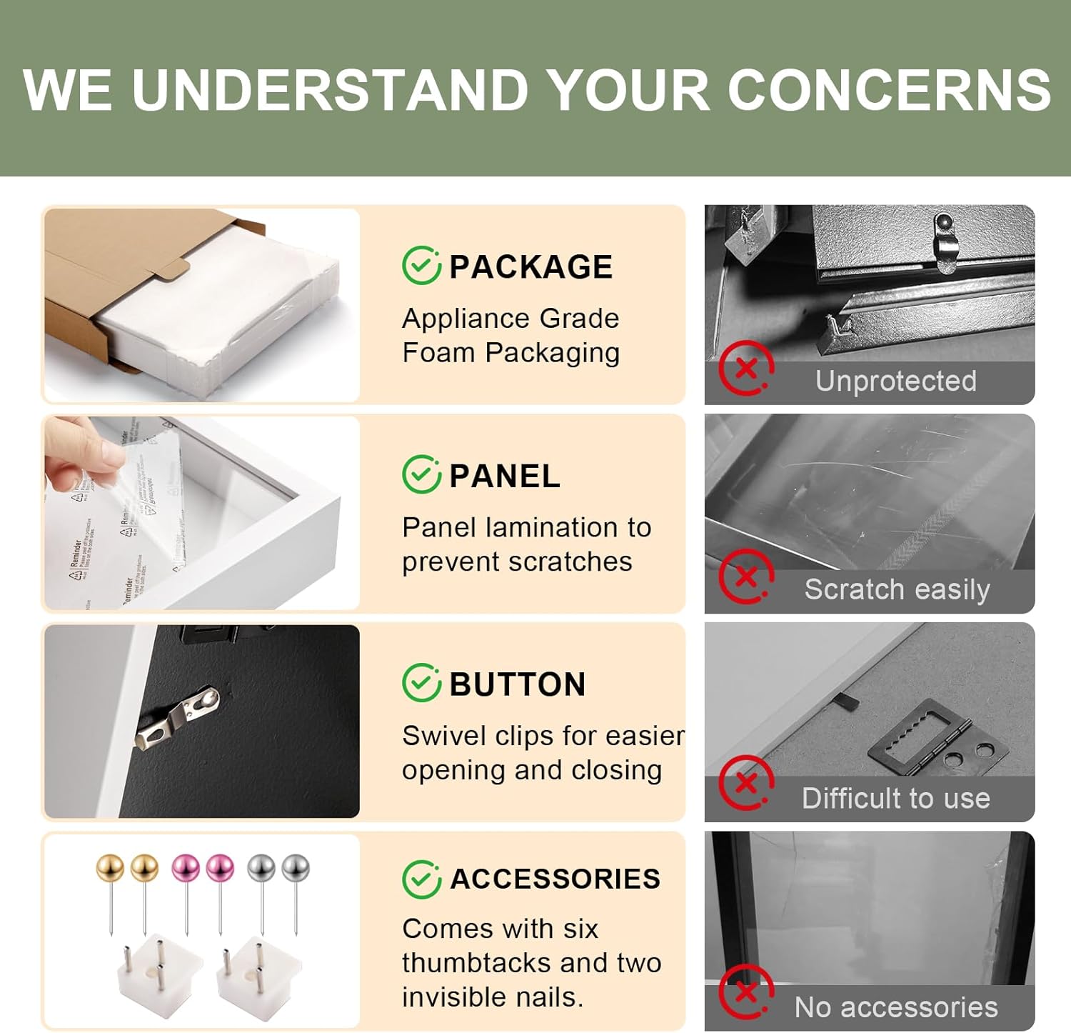 - 【Shock-Resistant Foam Packaging】We understand the importance of a perfect unboxing experience! We've upgraded your shadows box frames packaging: reinforced crush-resistant cardboard box (shockproof) + full plastic seal (dustproof) + reinforced corner protectors (impact-resistant) + dual-sided protective film on the front panel (scratch-proof). We meticulously craft our packaging to ensure you receive your shadowbox picture frame flawless and undamaged,ready to preserve every precious moment of your life. Film Removal Tip: Gently peel from a corner,pressing along the edge to avoid leaving marks and maintain its pristine appearance.
