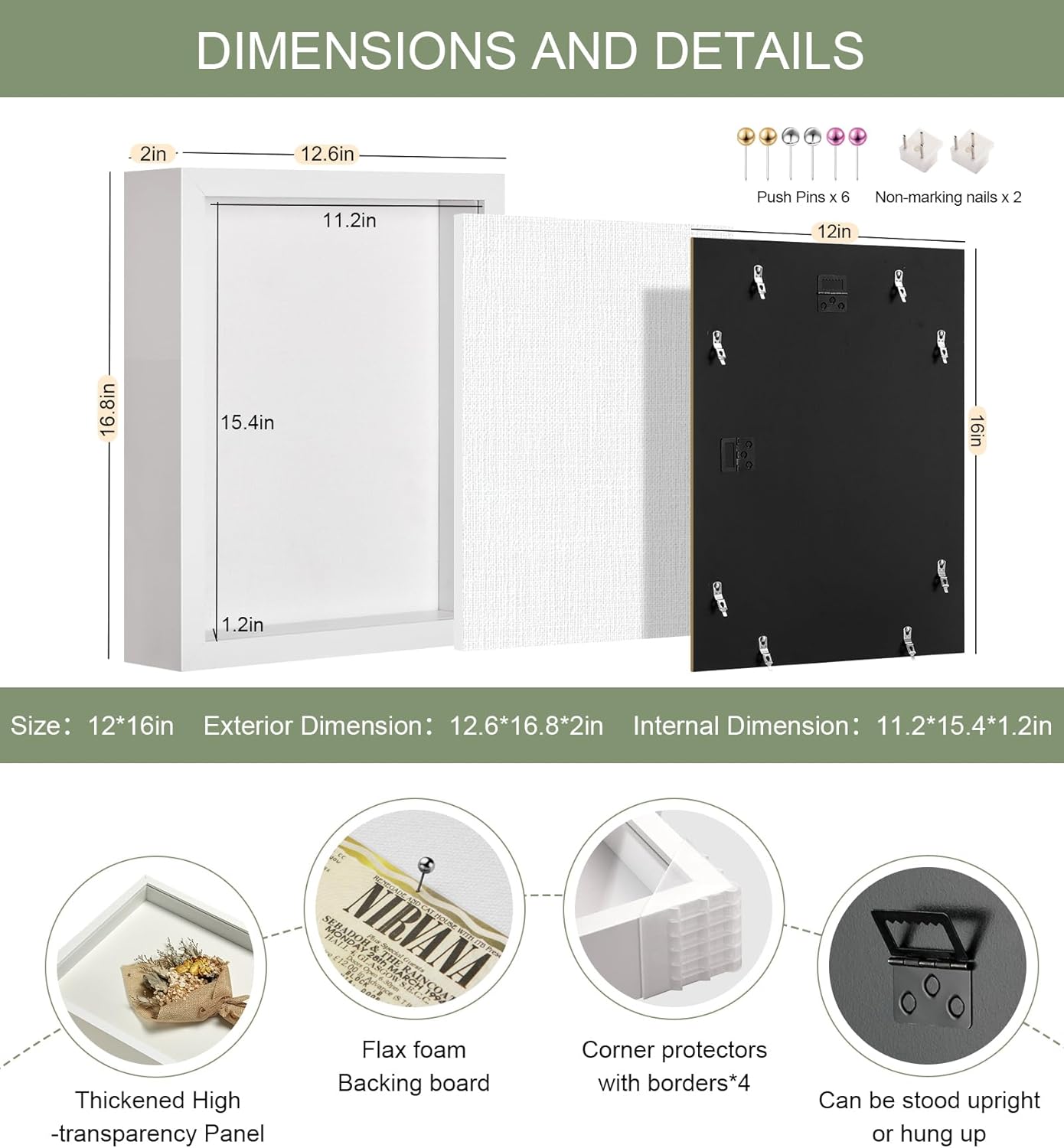 - 【RTZQQIN Shadow Box】This elegant 12x16in shadow box frame features a 0.25in thick white linen backing and 6 push pins,instantly elevating your dried flowers、medals、pets、graduation mementos,and other cherished items into art displays,Effortlessly create your own memory space.
