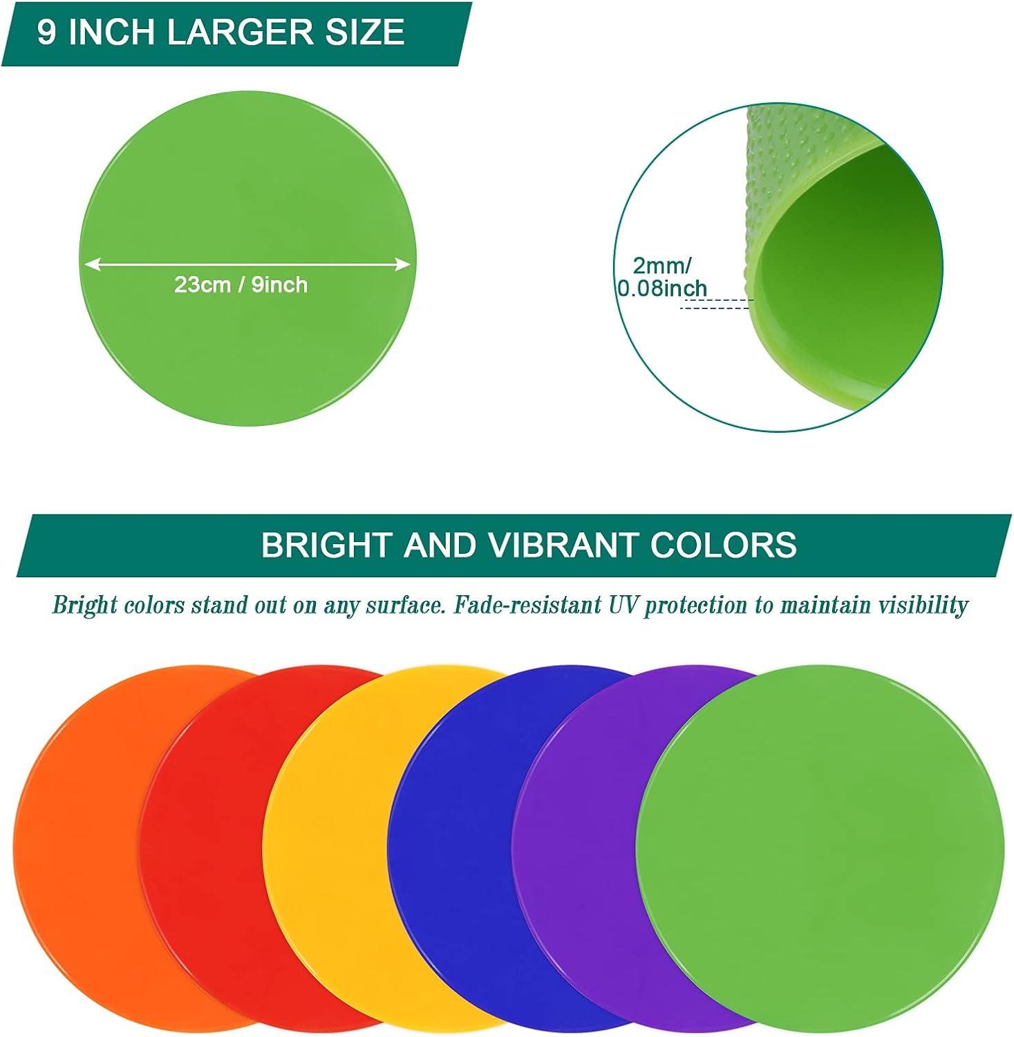 9 Inch Poly Spot Markers for Gym Floor Poly Spots, 12/18/24/36 Pcs Round Non-Slip Rubber Floor Dots Agility Markers Flat Cones for Sports Soccer PE Training, Dance, Classroom Activities
