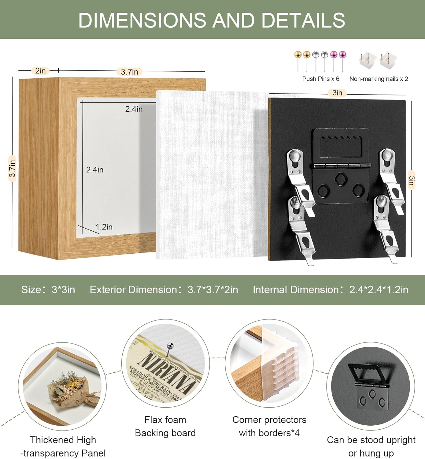 - 【RTZQQIN Shadow Box】This elegant 3x3in shadow box frame features a 0.25in thick white linen backing and 6 push pins,instantly elevating your dried flowers、medals、pets、graduation mementos,and other cherished items into art displays,Effortlessly create your own memory space.