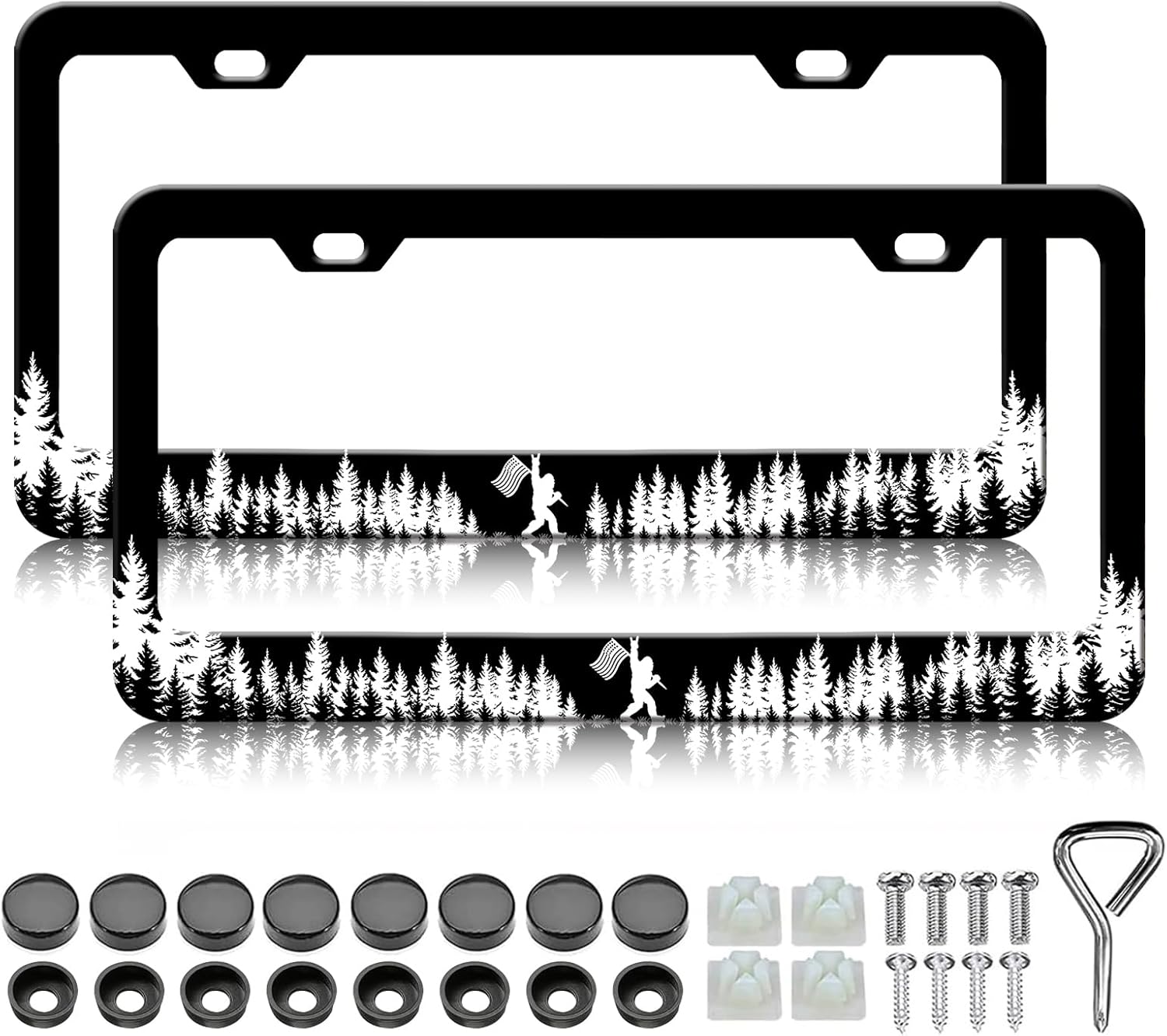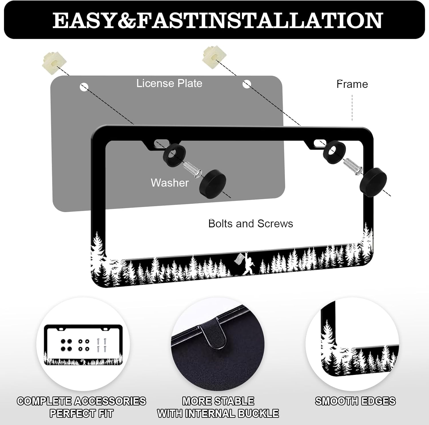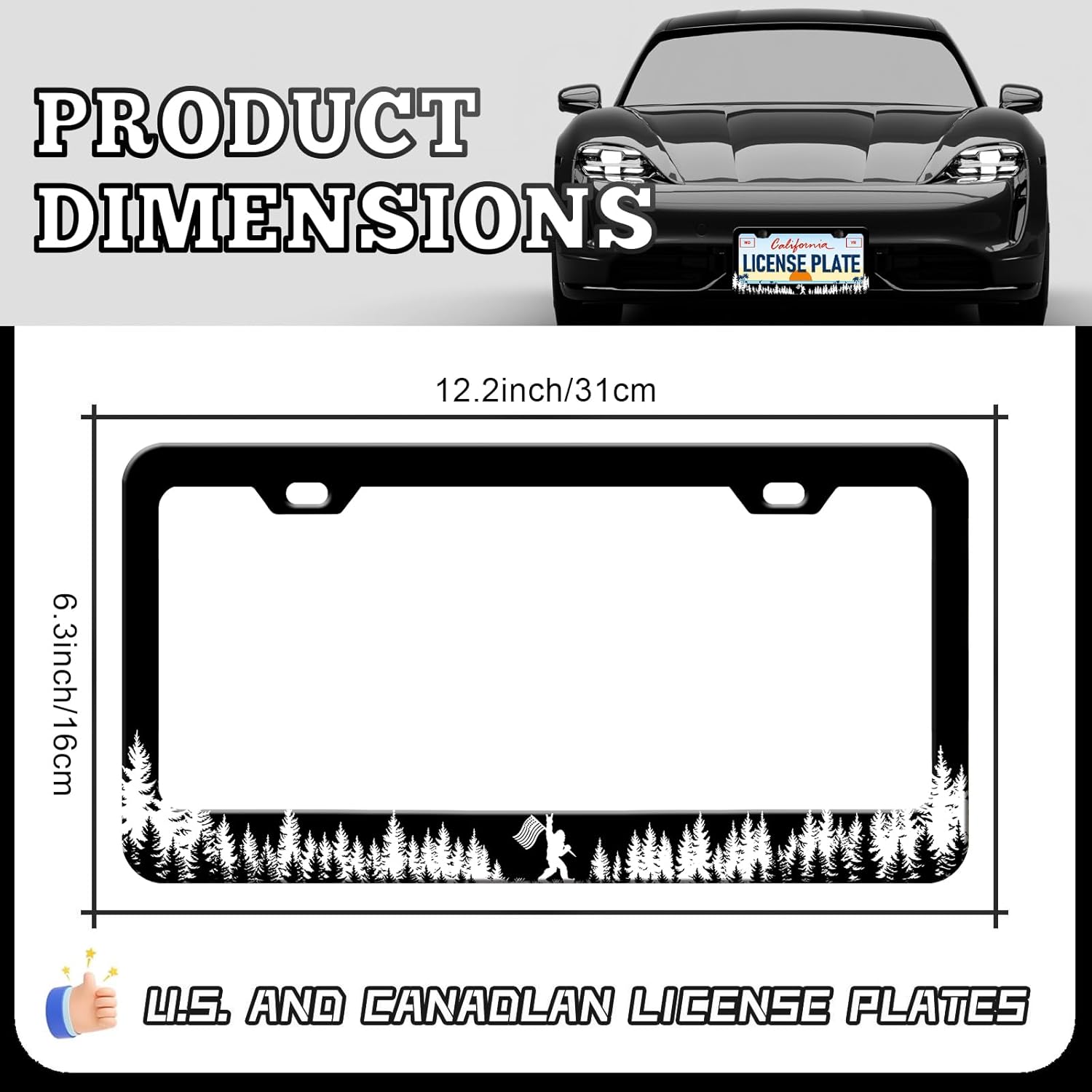 Coniferous Forest Bigfoot License Plate Frames - 2 Pack Front Rear Rock Black Cool License Plates Holder Covers, Aluminum Metal Rust-Proof Waterproof Car Tag Frame with Screws Fasteners Caps