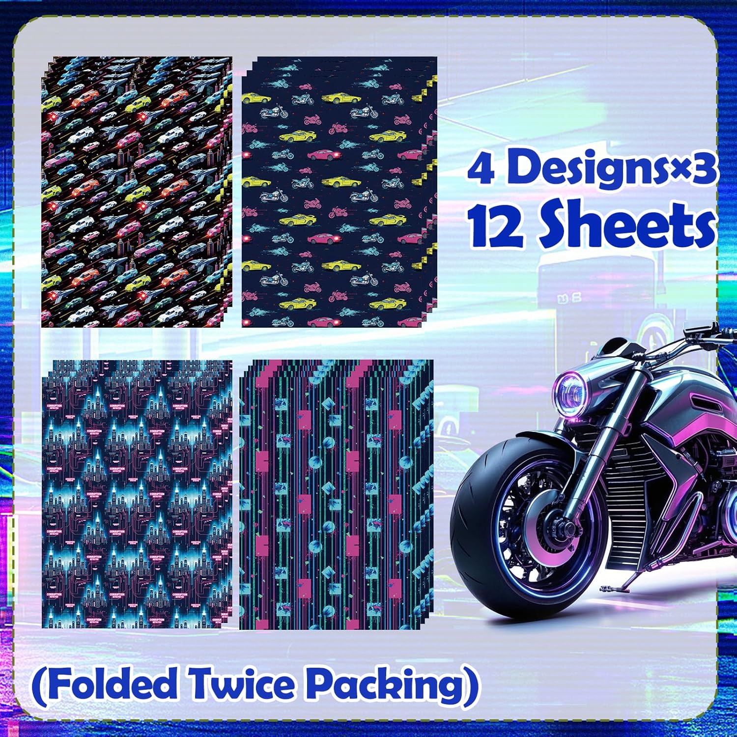 - 12 SHEETS & 4 DESIGNS:This futuristic wrapping paper set includes 12 high-quality sheets,featuring 4 unique cyber-inspired designs (3 sheets per design).Pre-folded for compact storage,this pack is ideal for personal gifting or small businesses.The vibrant,high-resolution prints ensure eye-catching appeal,perfect for birthdays,holidays,or tech-themed events.