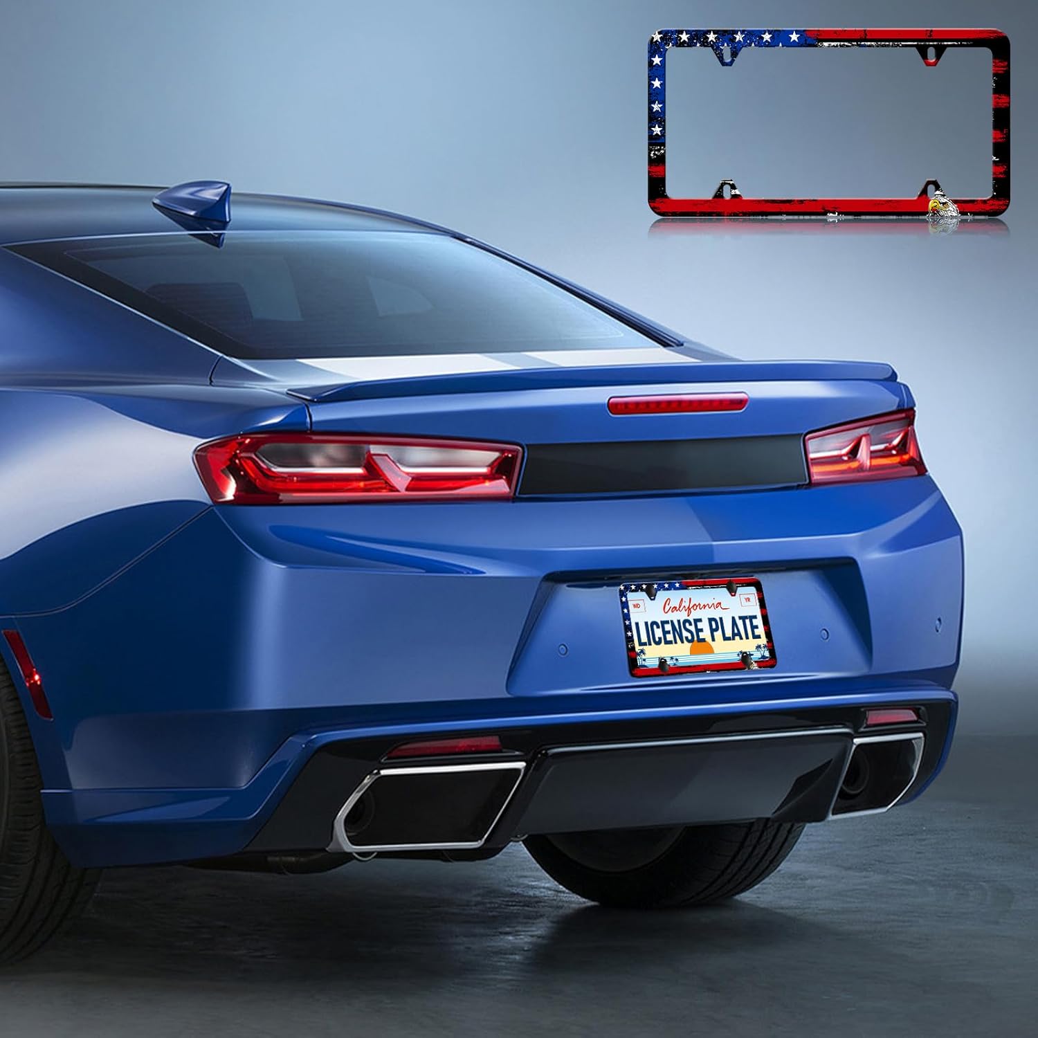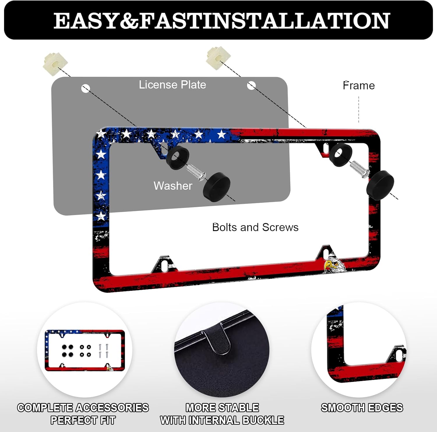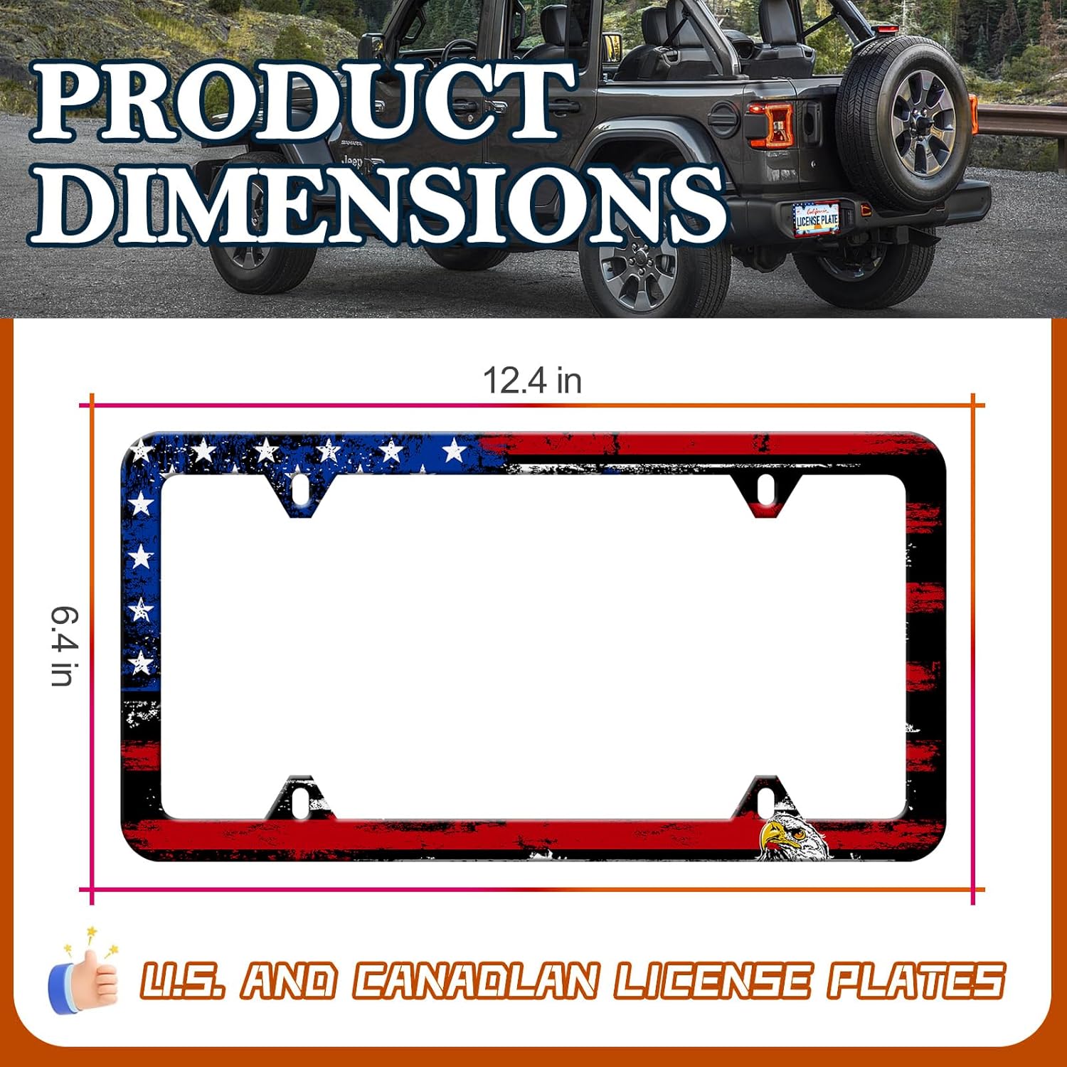 American Flag Eagle License Plate Frames - 2 Pack Front Rear Patriotic License Plates Holder Covers, Aluminum Metal Rust-Proof Waterproof Car Tag Frame with Screws Fasteners Caps