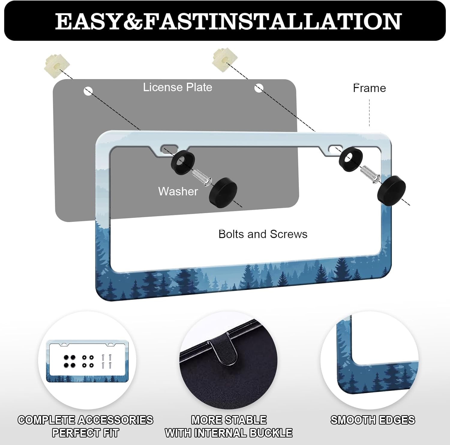 - Easy to Instal: The car license plate frame includes accessories, nuts, anti-theft screws, and comes with installation hardware, including all accessories shown in the figure;The license plate frame is easy to install without any special tools