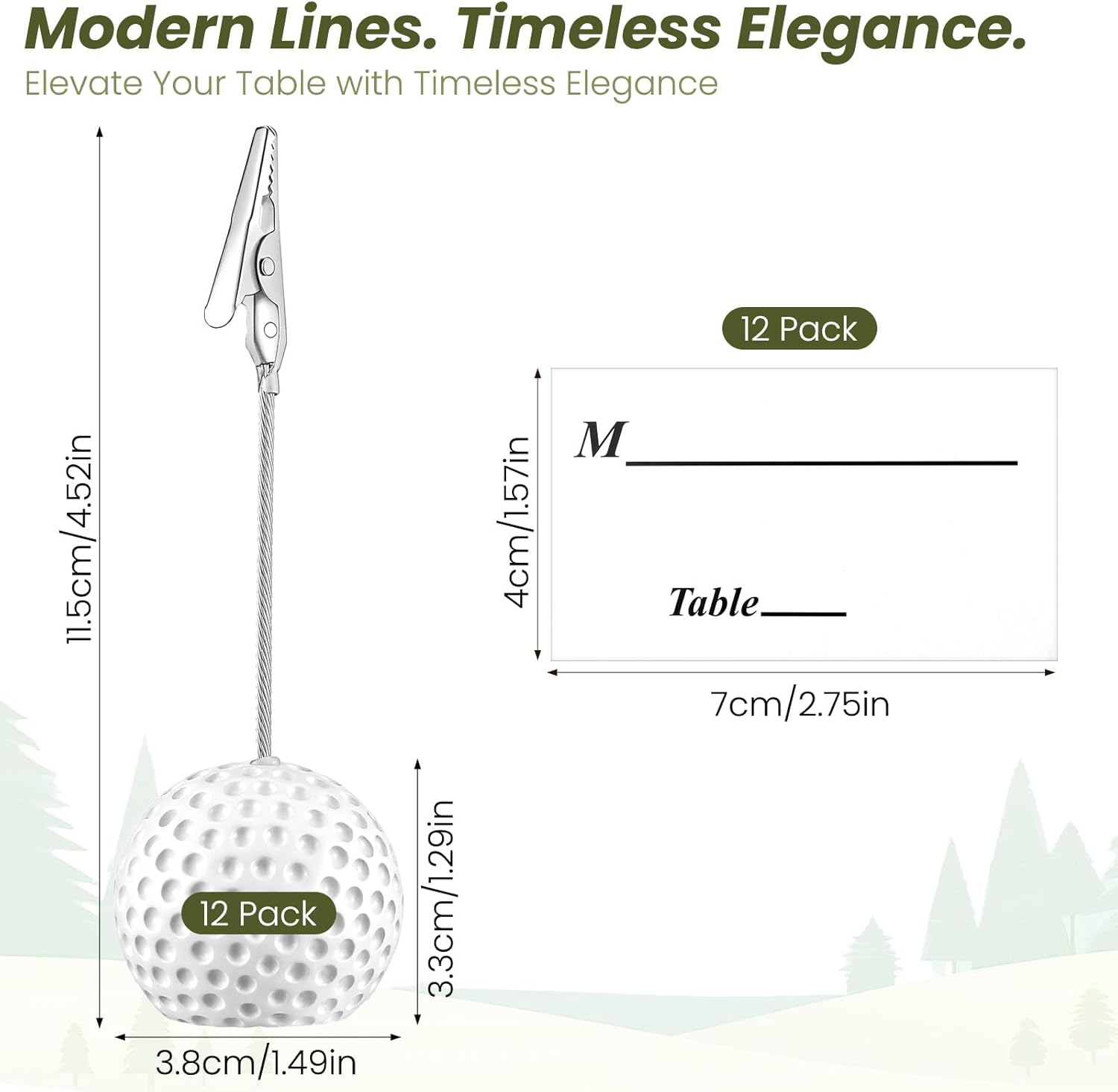 12 Pack Resin Golfball Base Memo Clip Golf Ball Place Card Holder Table Memo Number Name Card Holder Golf Centerpieces with Alligator Clip for Office Menu Wedding Sports Party Events Table Decoration