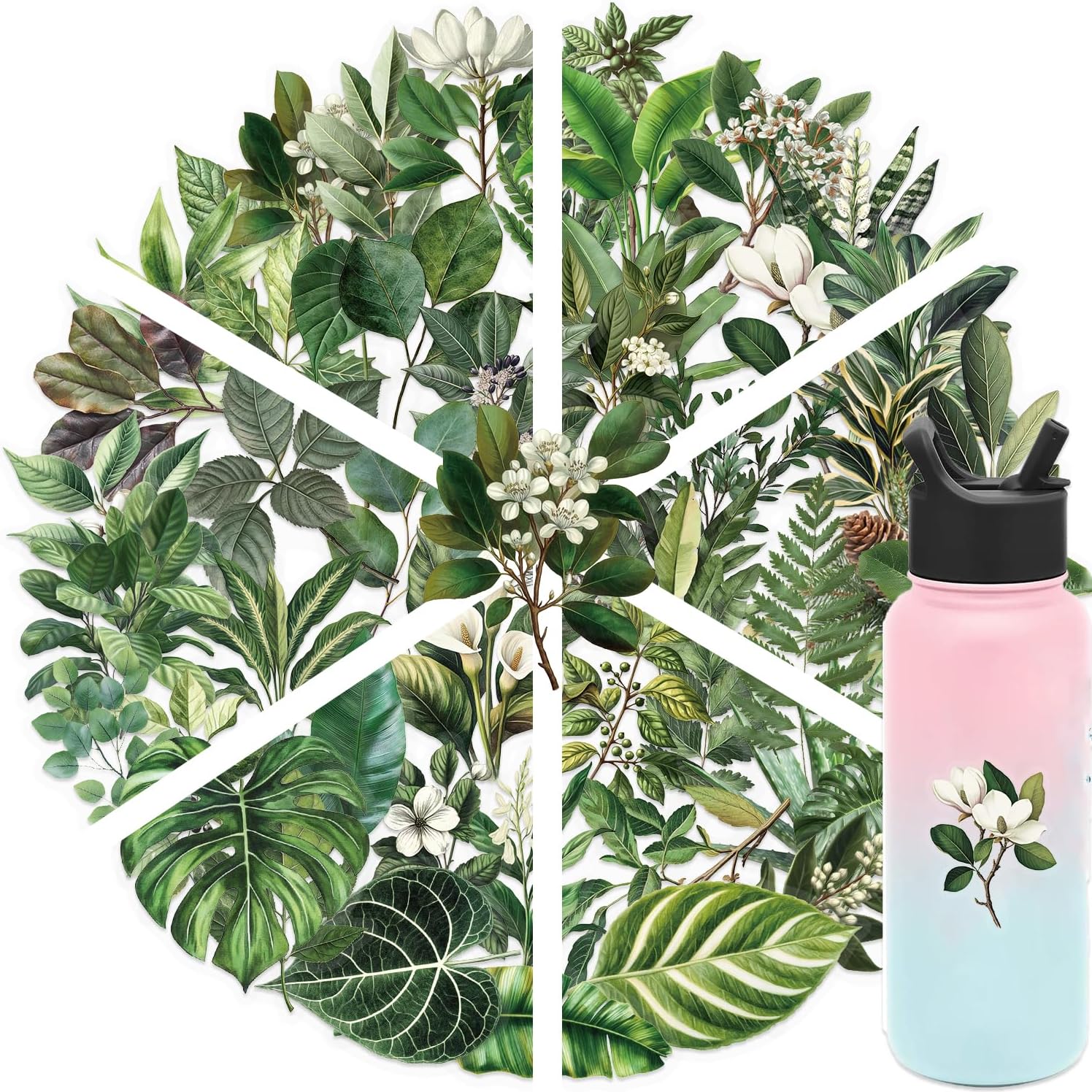 200 Pcs Natural Flower Stickers for Scrapbooking, Self-Adhesive Transparent Floral Stickers in 4 Colors, Journaling Supplies for Adult Card Making, Water Bottle Decoration(Natural Floral)