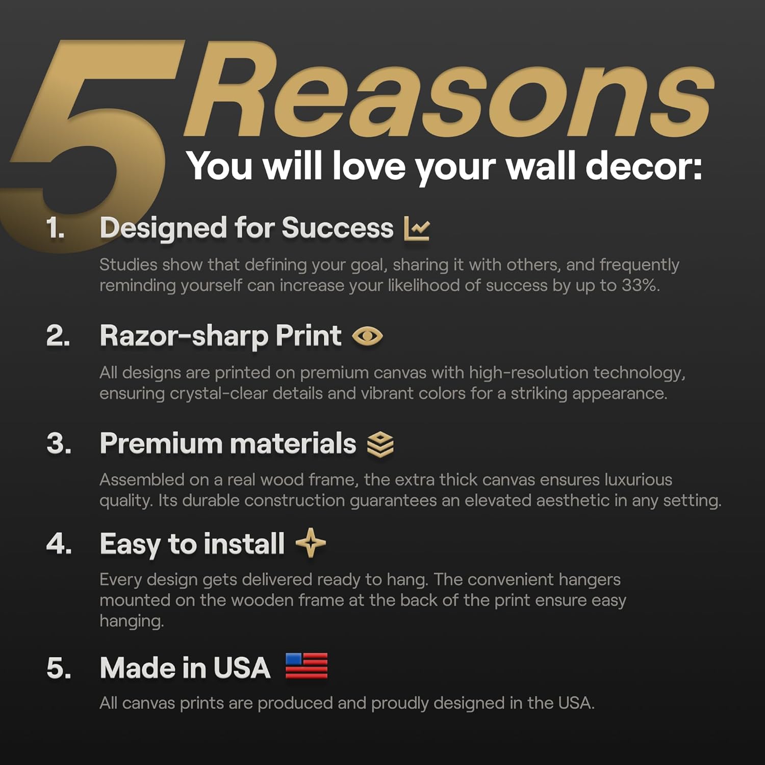 - Achieve Your Dreams – To be an entrepreneur takes a special kind of person - someone with focus, grit, and desire to succeed. Our motivational canvas prints for entrepreneurs are a daily reminder that your dreams are possible.