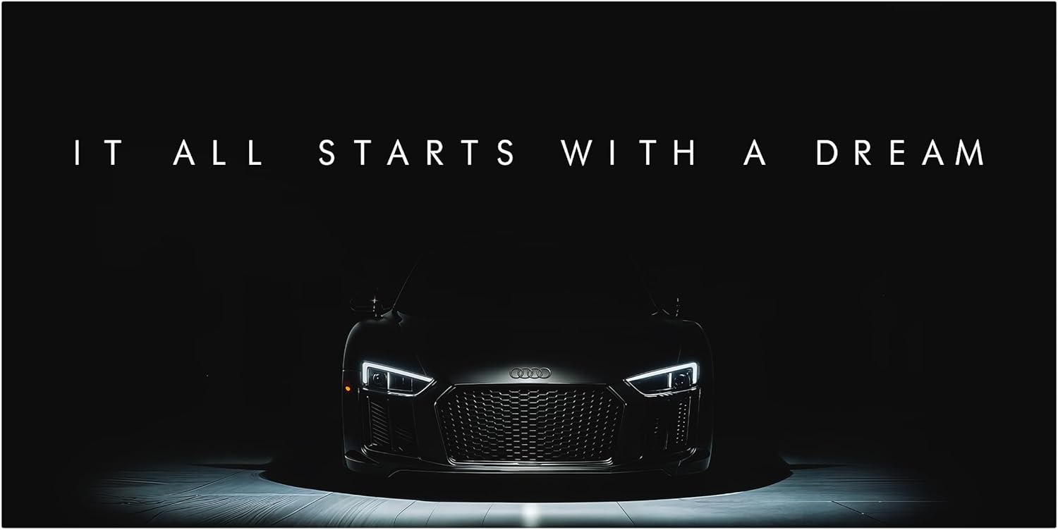 Motivational Wall Art for Office, Super Car Art Canvas, Inspirational Automotive Decor for Audi R8 Sportscar Lovers, Motivational Wall Decor for Office and Home, Car Poster (24" x 48" in)