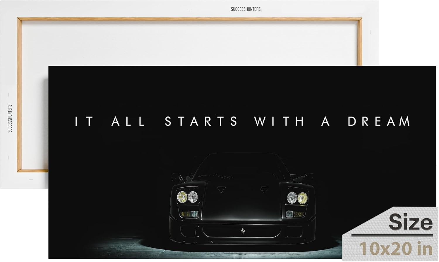 Motivational Wall Art for Office, Super Car Art Canvas, Inspirational Automotive Decor for Ferrari F40 Sportscar Lovers, Motivational Wall Decor for Office and Home, Car Poster (10" x 20" in)
