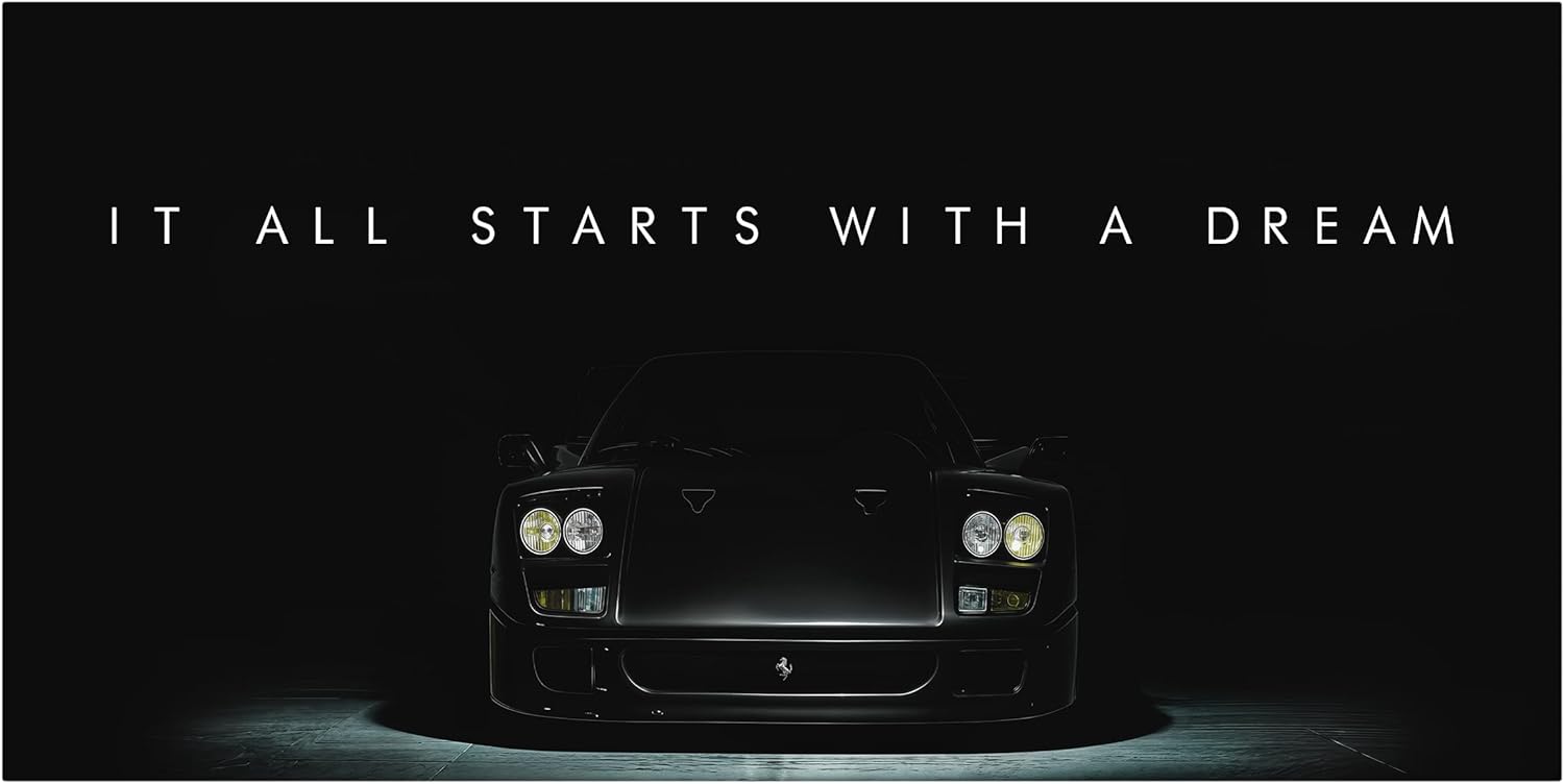 Motivational Wall Art for Office, Super Car Art Canvas, Inspirational Automotive Decor for Ferrari F40 Sportscar Lovers, Motivational Wall Decor for Office and Home, Car Poster (24" x 48" in)