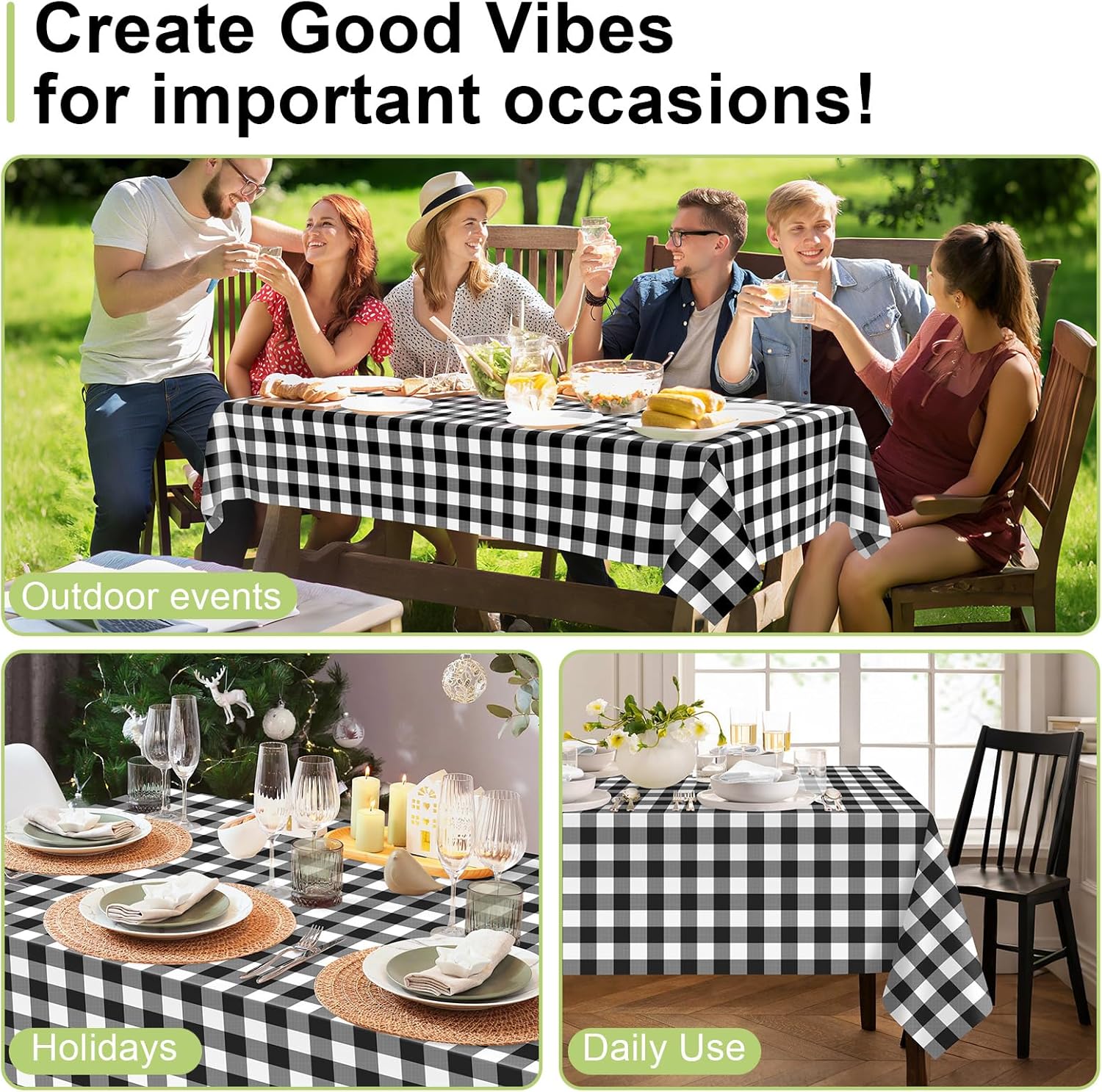 - Suitable Size: This black gingham tablecloth measures 54 X 108 inches, and fits seating for 8-10 people. Can be used for indoor and outdoor events.
