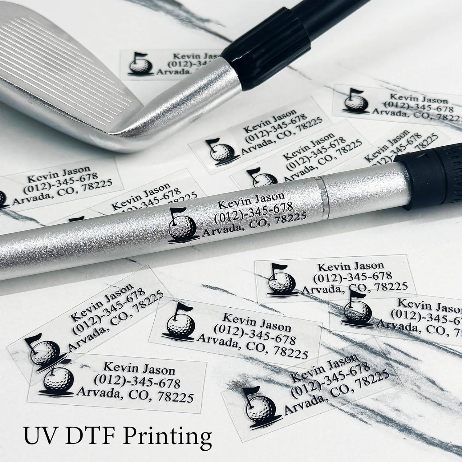 - Golf Club Stickers Customization: Elevate your golf clubs with our durable DTF Printing stickers! Personalize each club with your name, phone number, or address in striking black & white or vibrant color to prevent loss