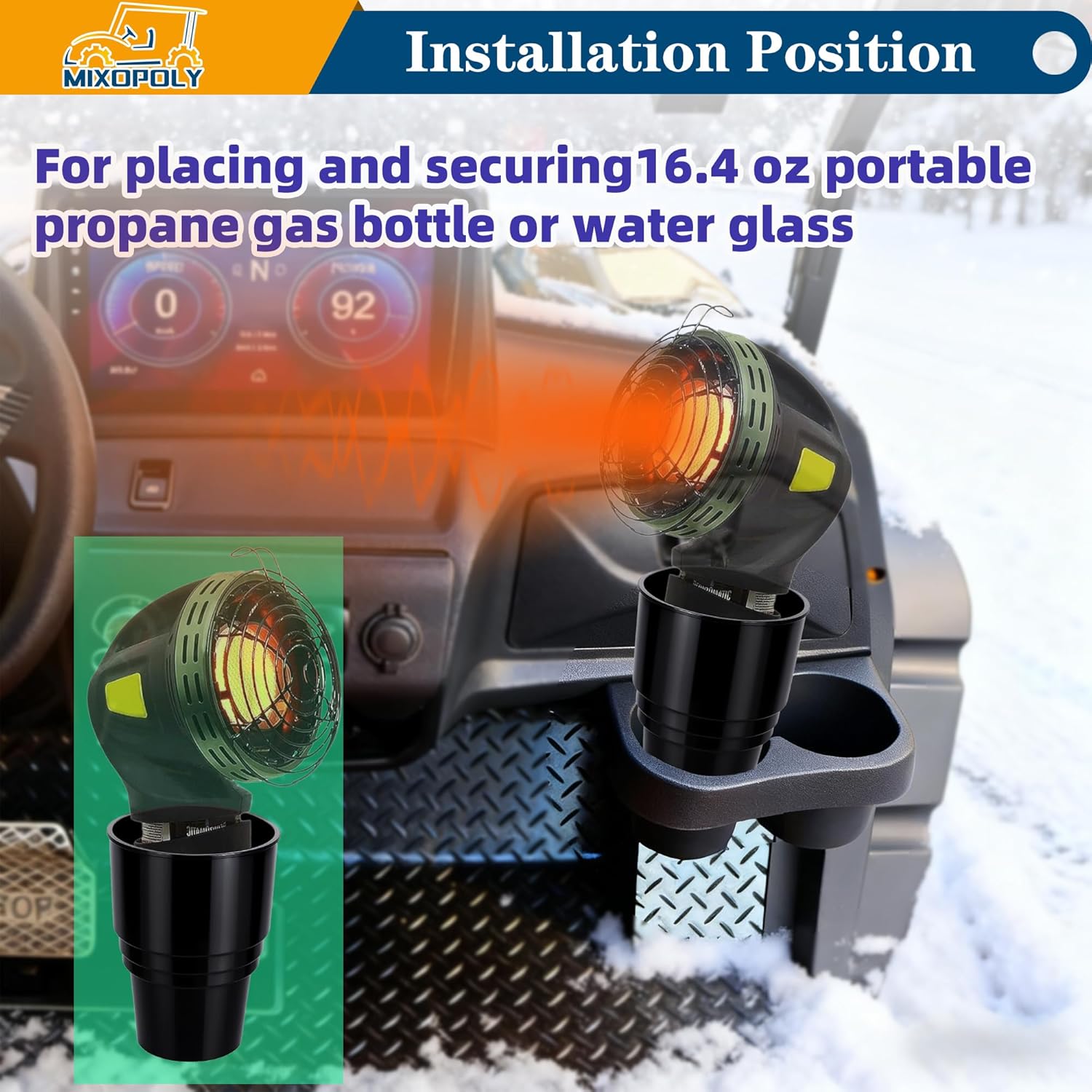 - Size of Golf Cart Heater Holder: Height: 5.75 inches, inside diameter: 4 inches, bottom diameter: 2.6 inches. Recommend to confirm propane tank size before place an order
