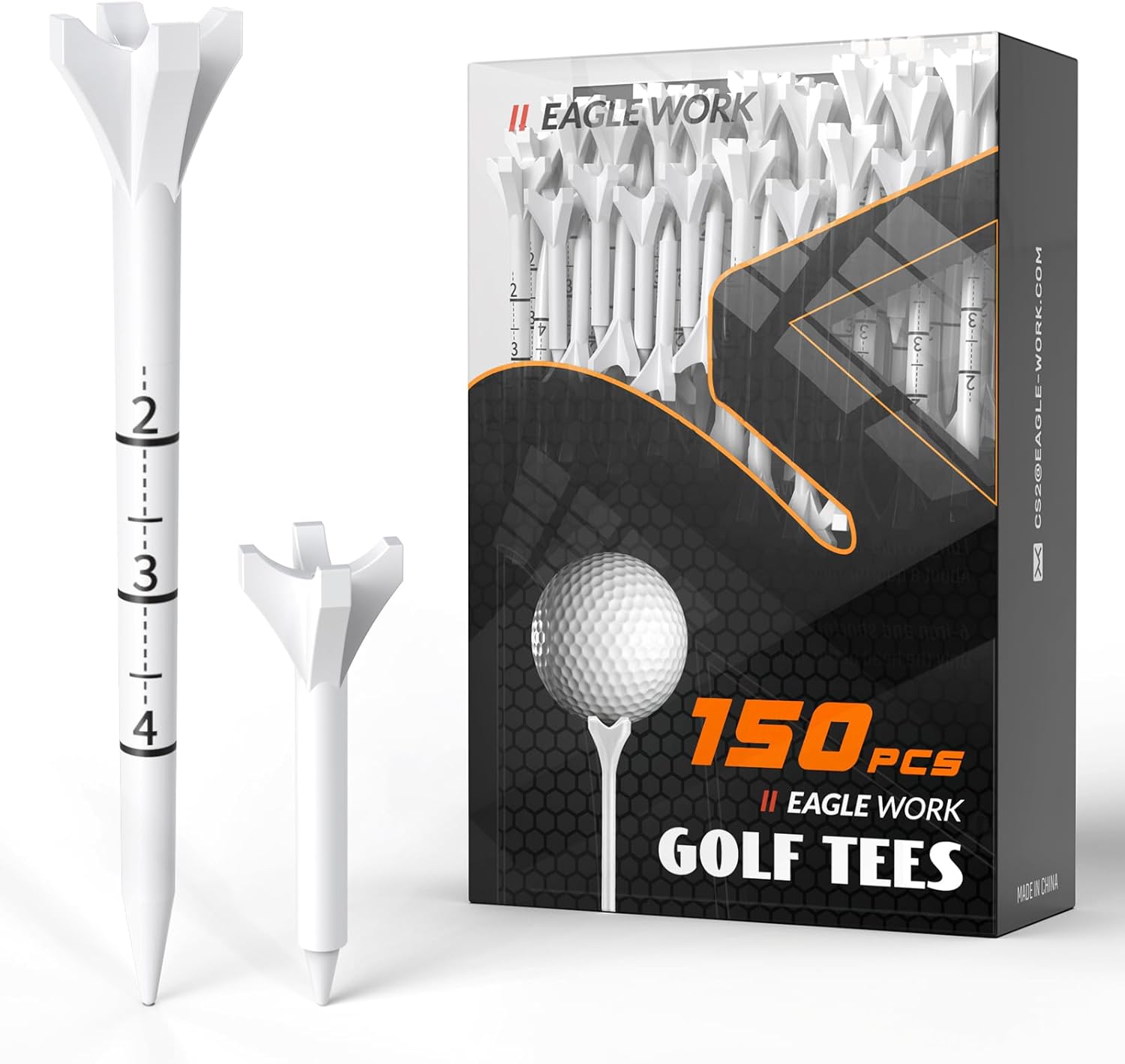 Plastic Golf Tees, 150 Pack (130 Driver Tees + 20 Iron/Hybrid Tees), Low Friction & Resistance, 4-Prongs Head Design to Reduce Friction & Side Spin