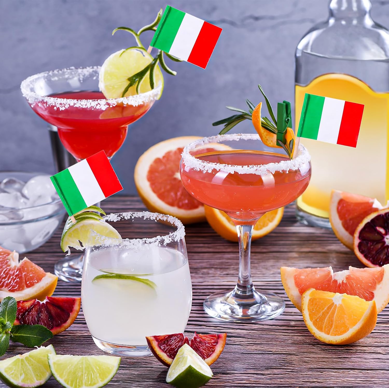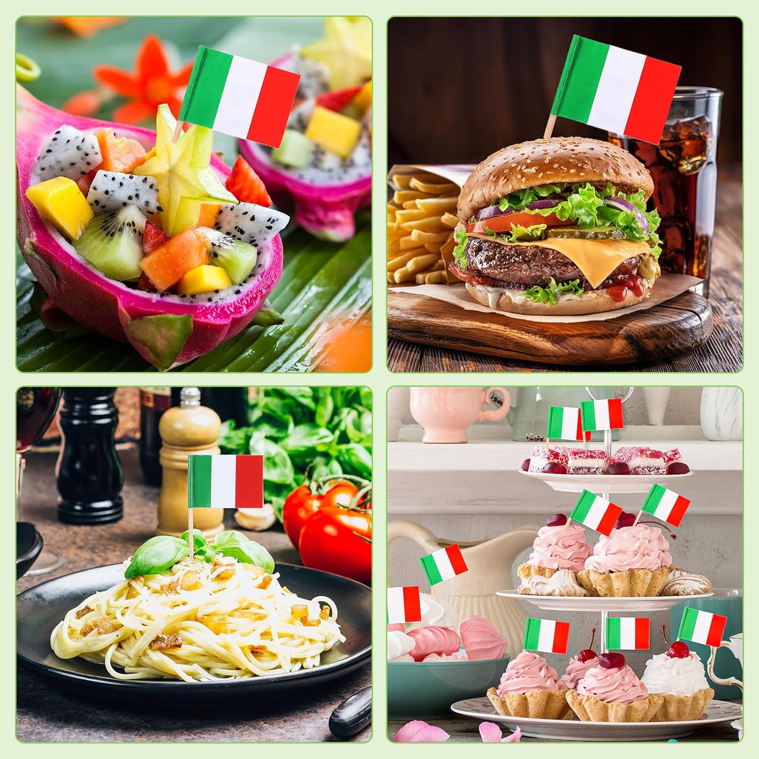 Meanplan 1000 Pcs Italy Flag Italian Toothpick Flags, Cocktail Picks Small Mini Stick Italy Cupcake Toppers Country Picks Party Decoration Celebration Cocktail Food Appetizers Bar Cake Flags