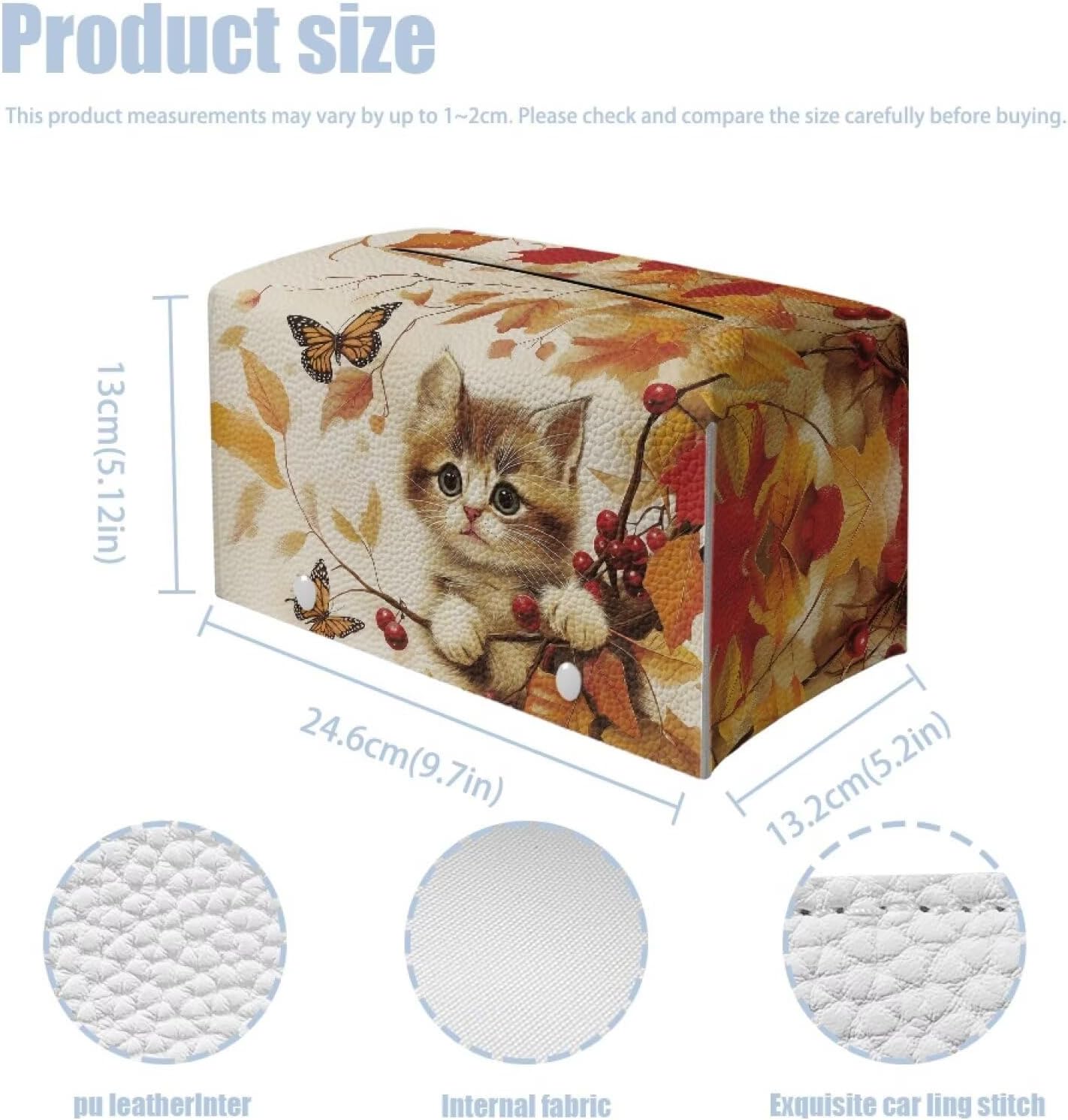 Rectangle Tissue Box Cover Cute Cat Leather Tissue Box Holder for Bathroom Toilet Waterproof Facial Paper Organizer Fall Theme Home Decorations for Dining Room Bathroom