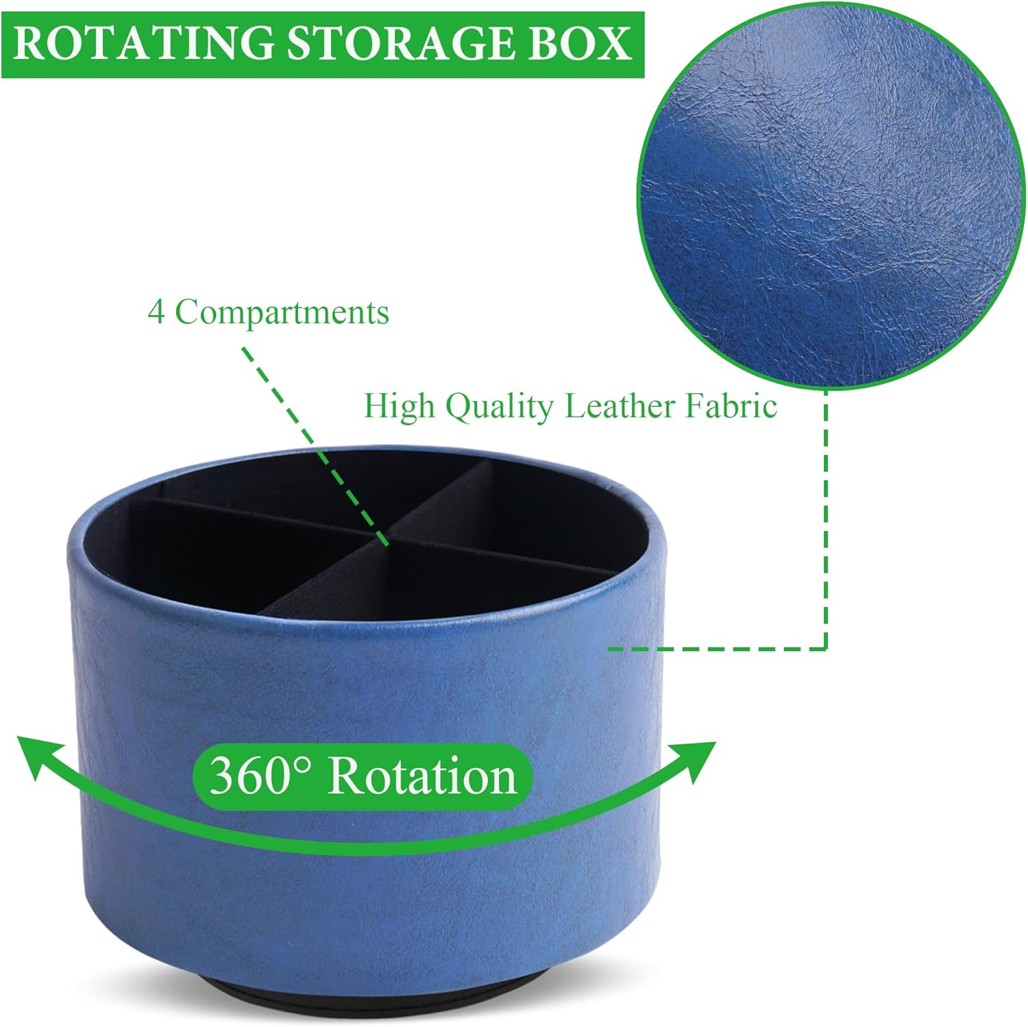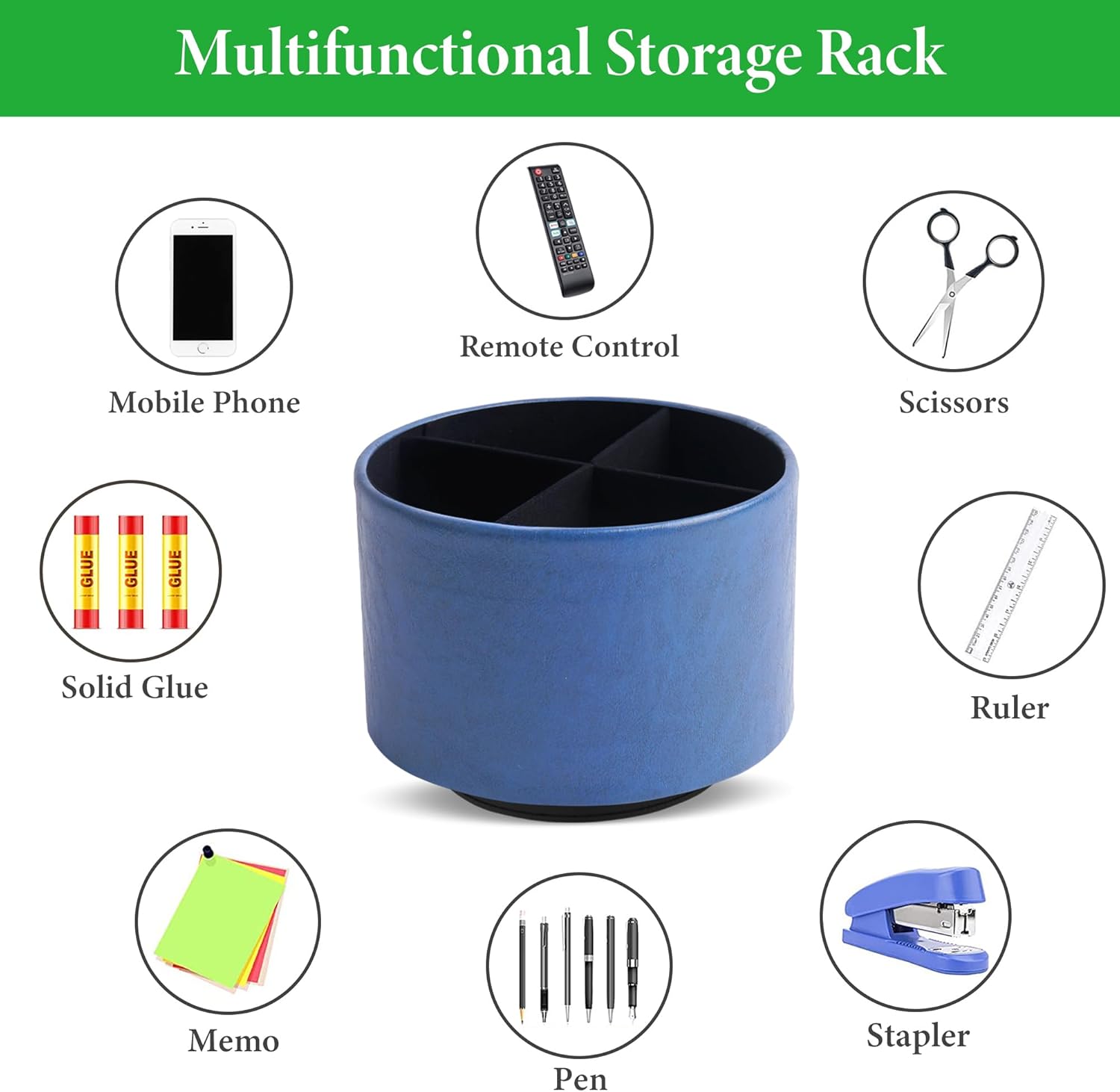 Hennaja Round Leather Art Supply Organizer,Remote Control Holder,360 Degree Spinning,Multi-Functional Pencil Holder,4 Compartments Desktop Stationary Organizer(1-Oil Blue2)