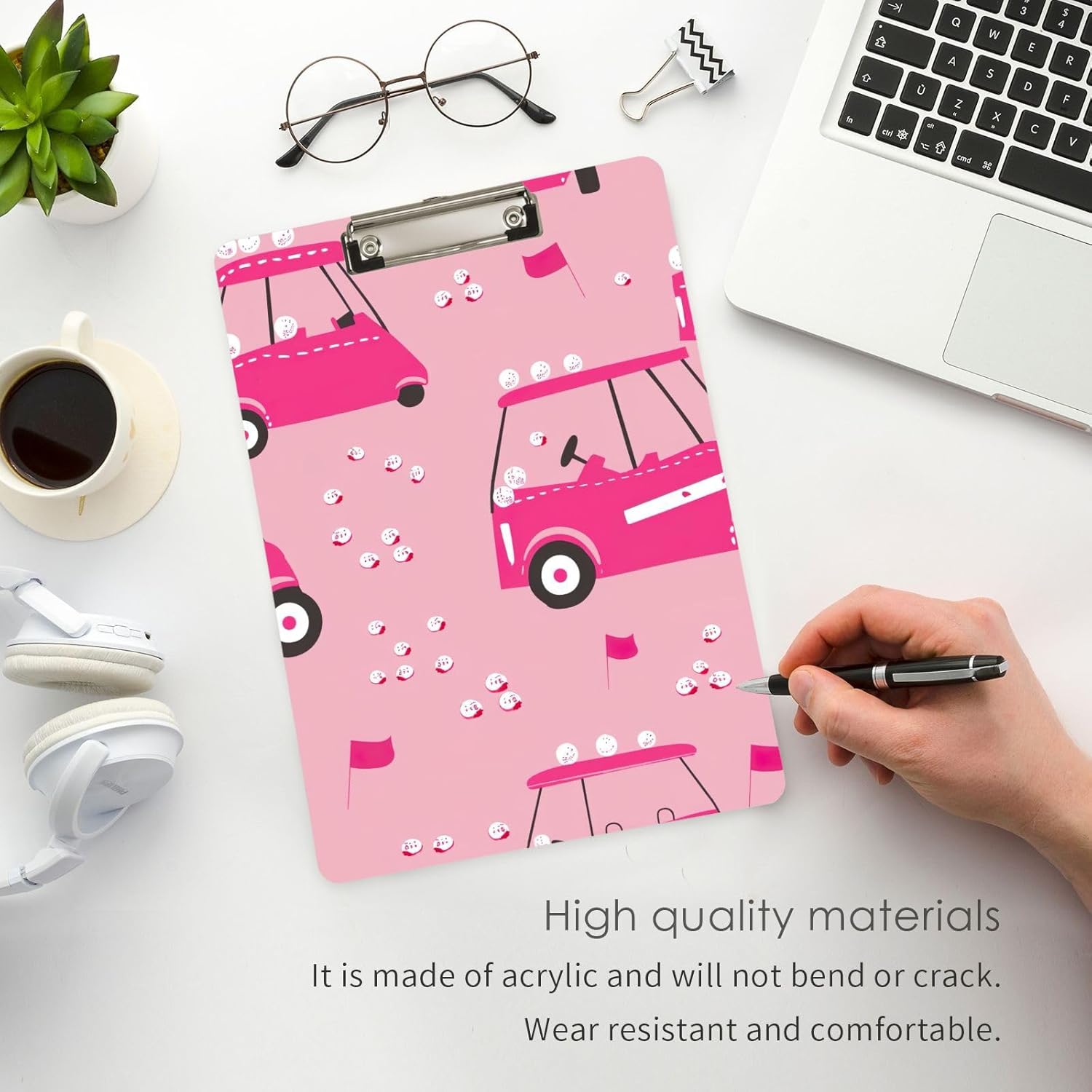 Golf CarThick Clear Acrylic Clipboard with Shiny Gold/Silver Finish Clip21344656