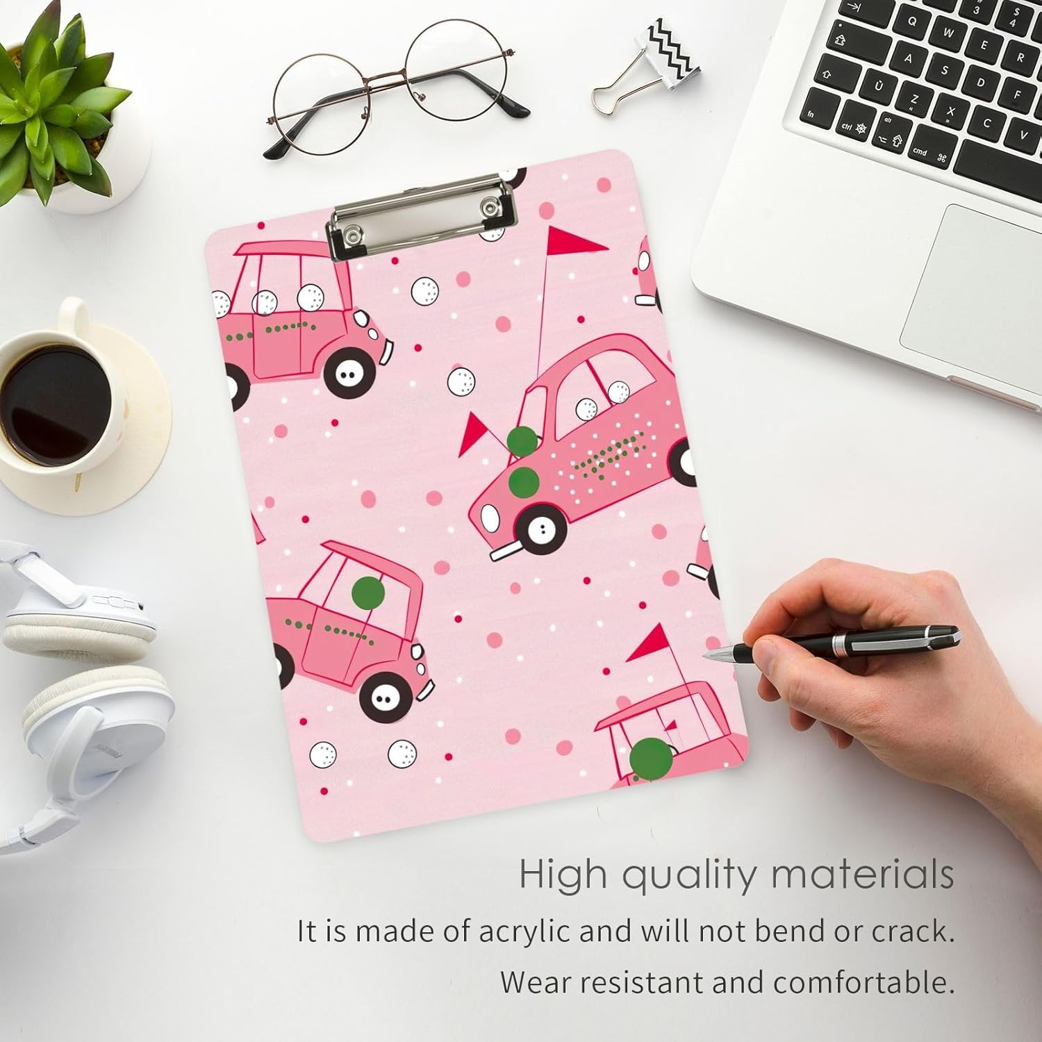 Golf CarThick Clear Acrylic Clipboard with Shiny Gold/Silver Finish Clip21344655