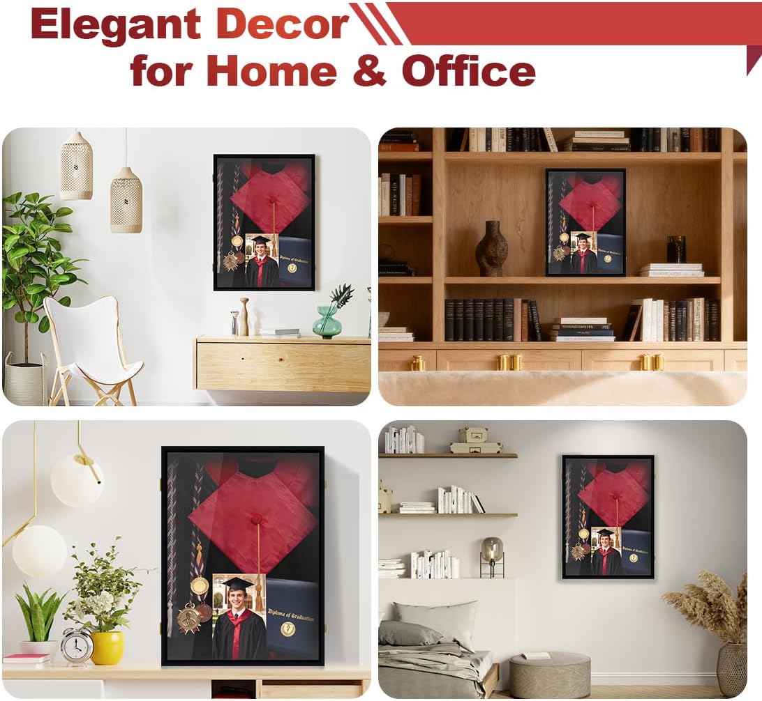 - 【Elegant Decor & Meaningful Gift】From cherished mementos to elegant art. This graduation shadow box turns your graduation achievements into a premium display piece. The versatile and bold mahogany frame complements any decor style, making it the perfect decorative accent for a graduate's new home or office, forever honoring their achievement.