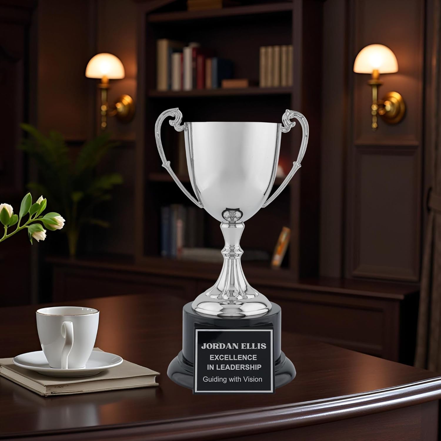 Elite Nickel-Plated Metal Trophy Cup – Custom Engraved Award Polished Finish on Ebony Wood Base, Premium Recognition for Golf, Tennis, Corporate Awards, Championship Events & Competitions